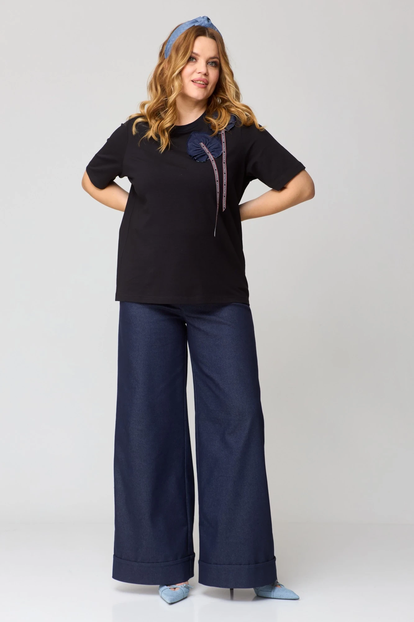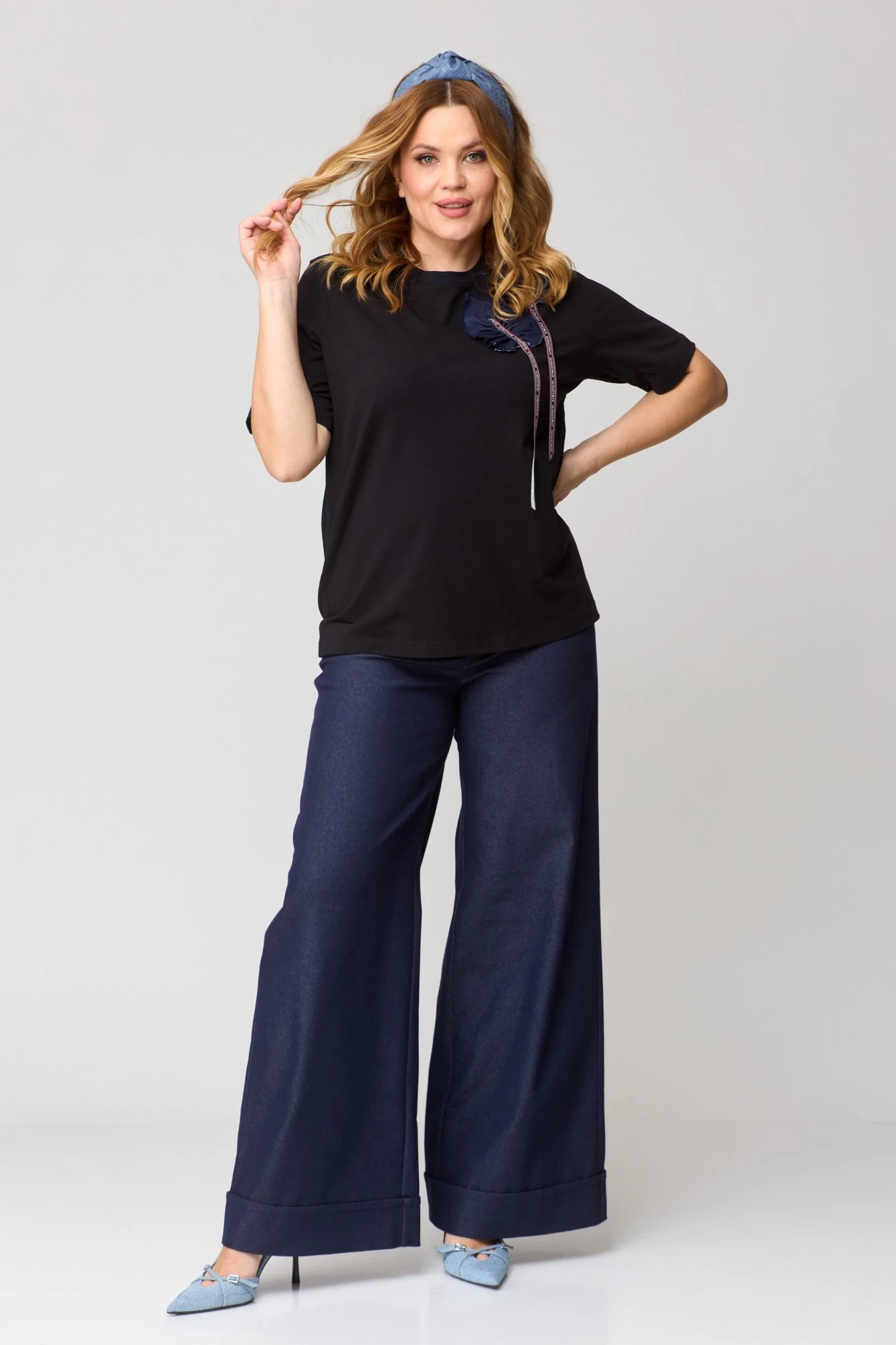 Брючный костюм из хлопка Michel Chic 1368 синий, черный двойка