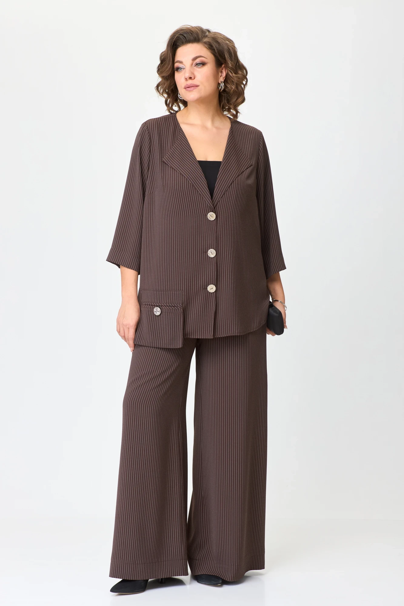 Брючный костюм Michel Chic 1386/1 коричневый, полоска двойка