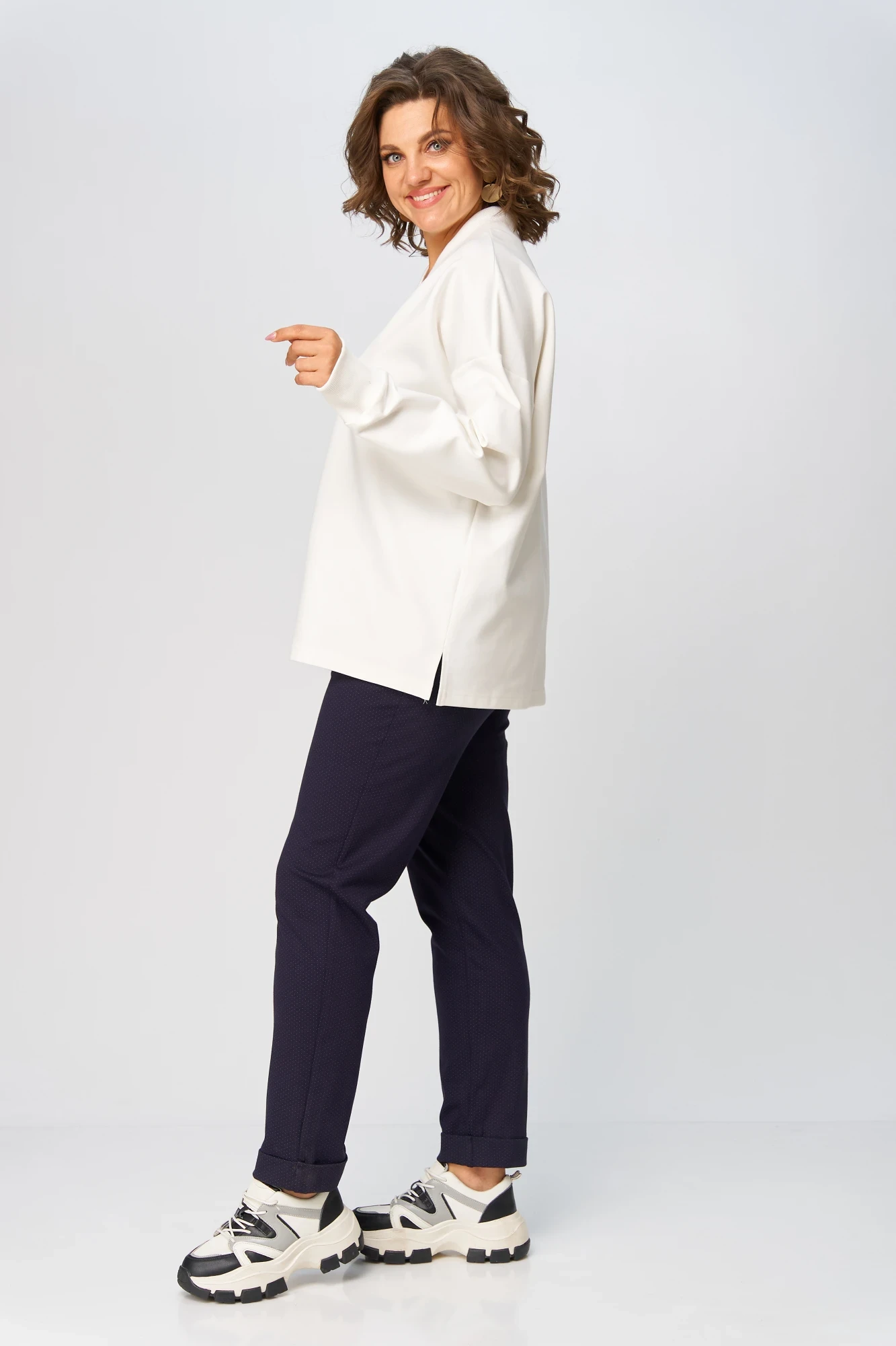 Брючный костюм Michel Chic 1395 синий, молоко