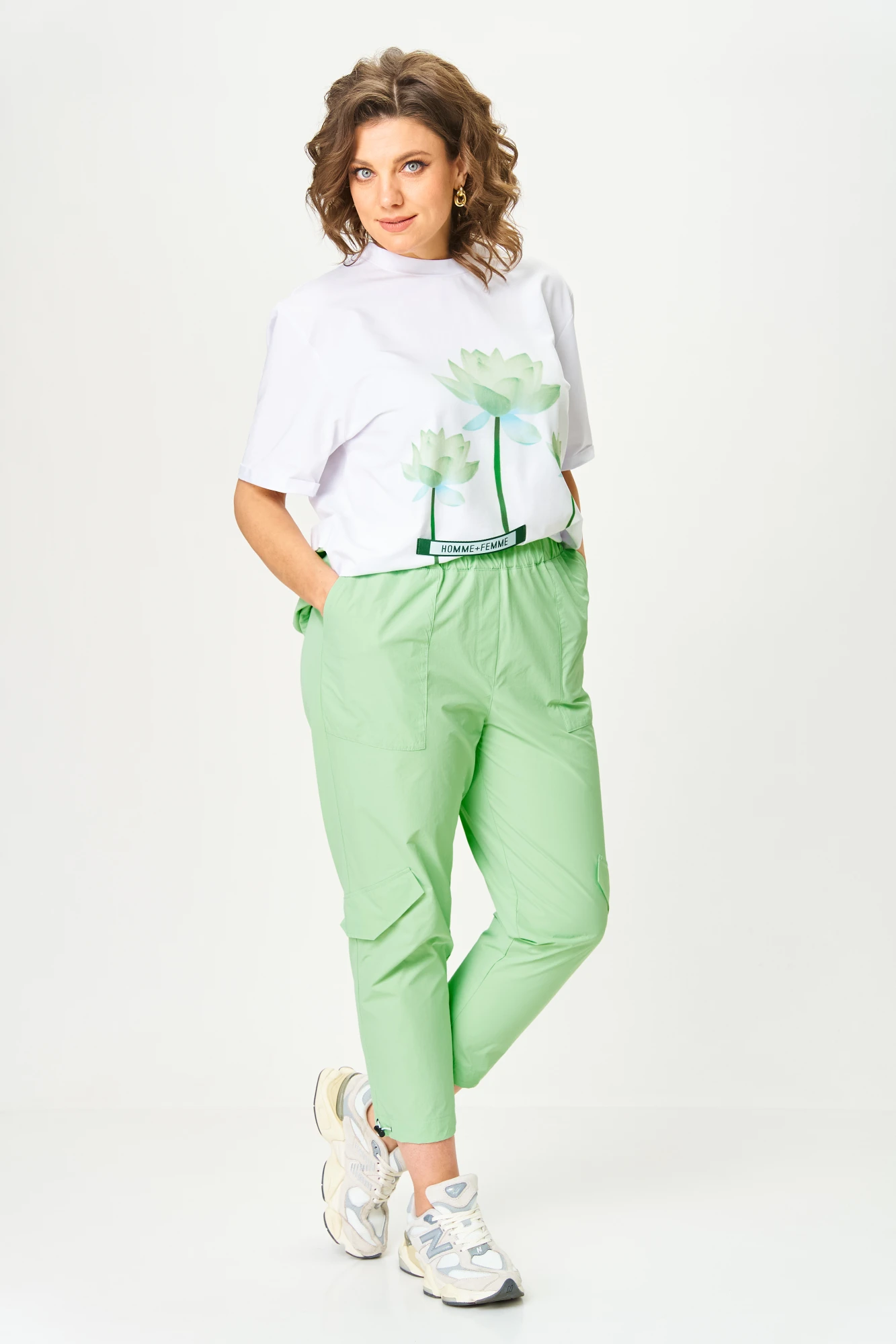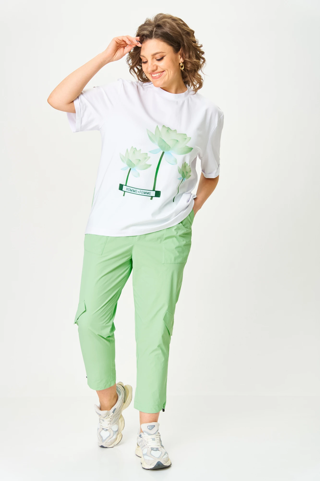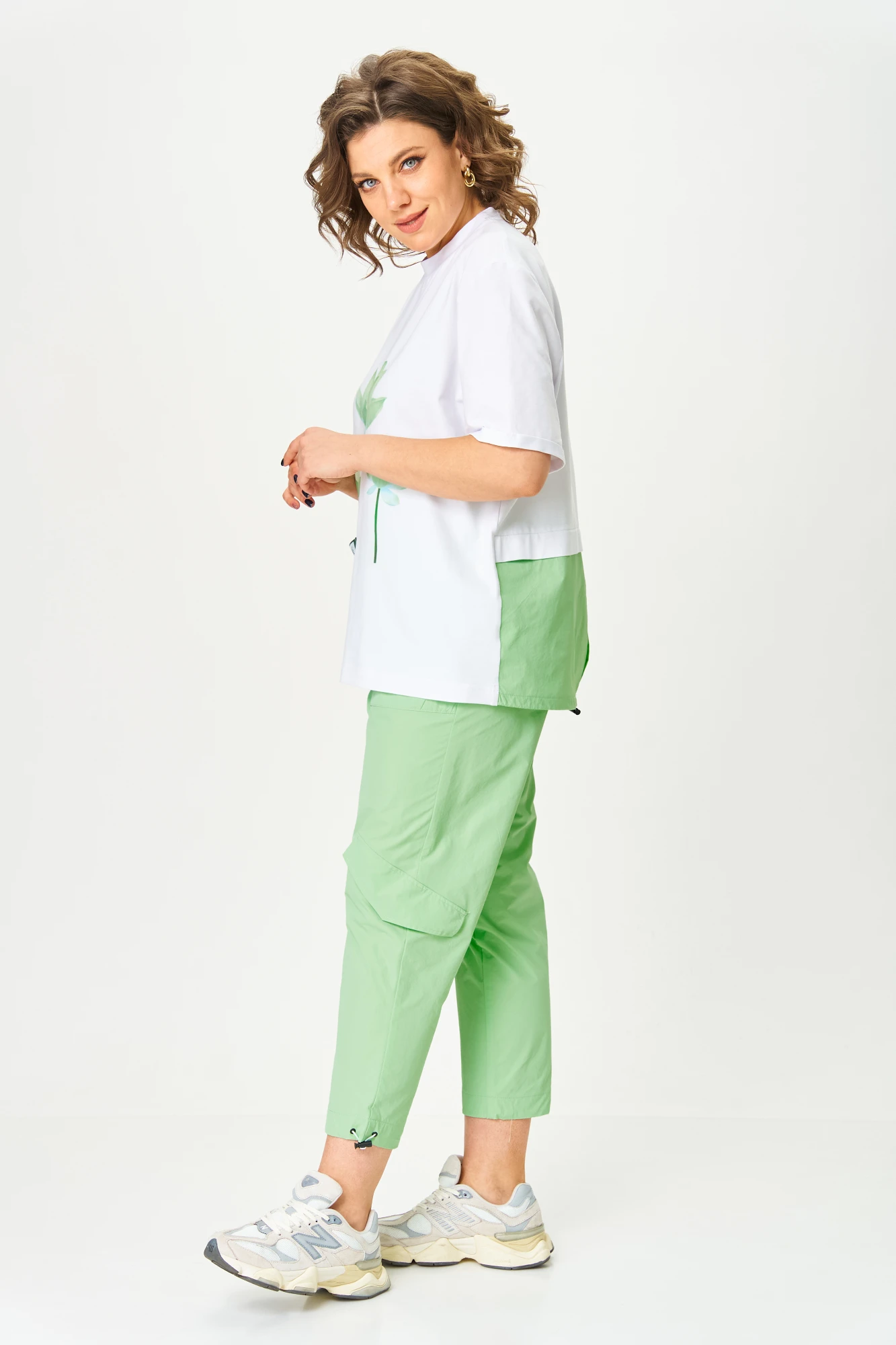 Брючный костюм Michel Chic 1414 белый, салатовый двойка