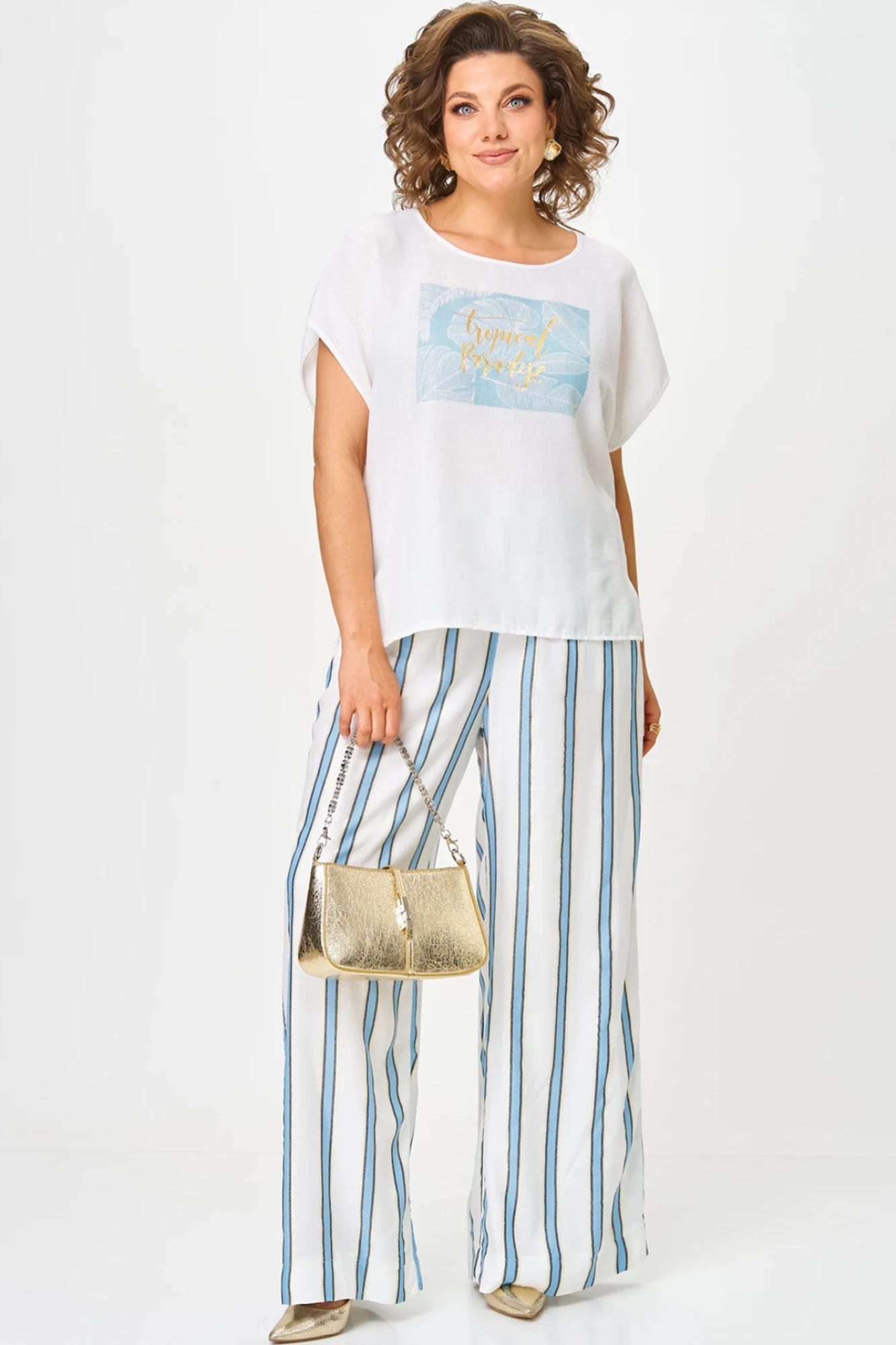Брючный костюм Michel Chic 1431 белый, голубая полоска двойка