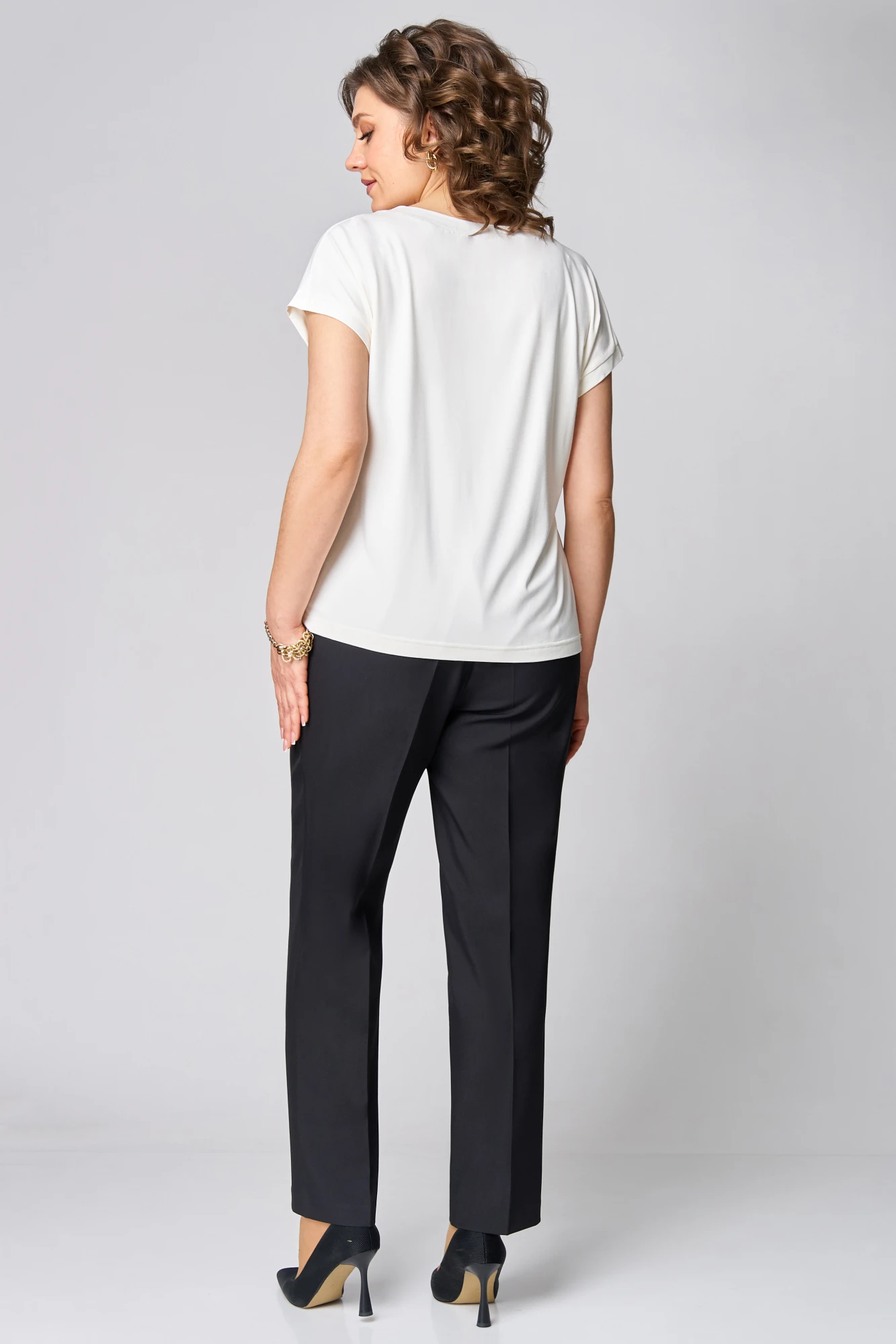 Брючный костюм Мишель Стиль 1100-2 черно-молочный тройка