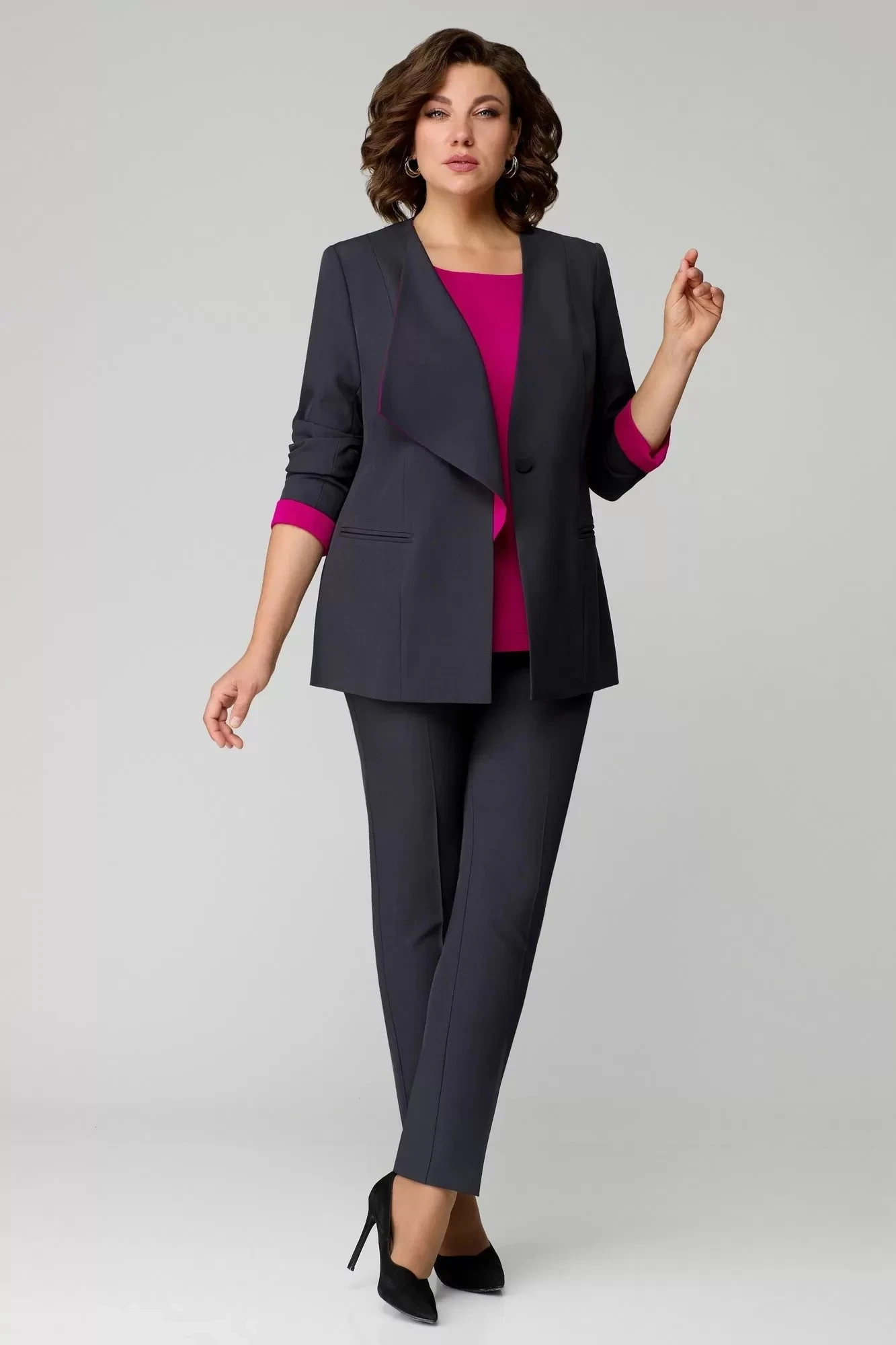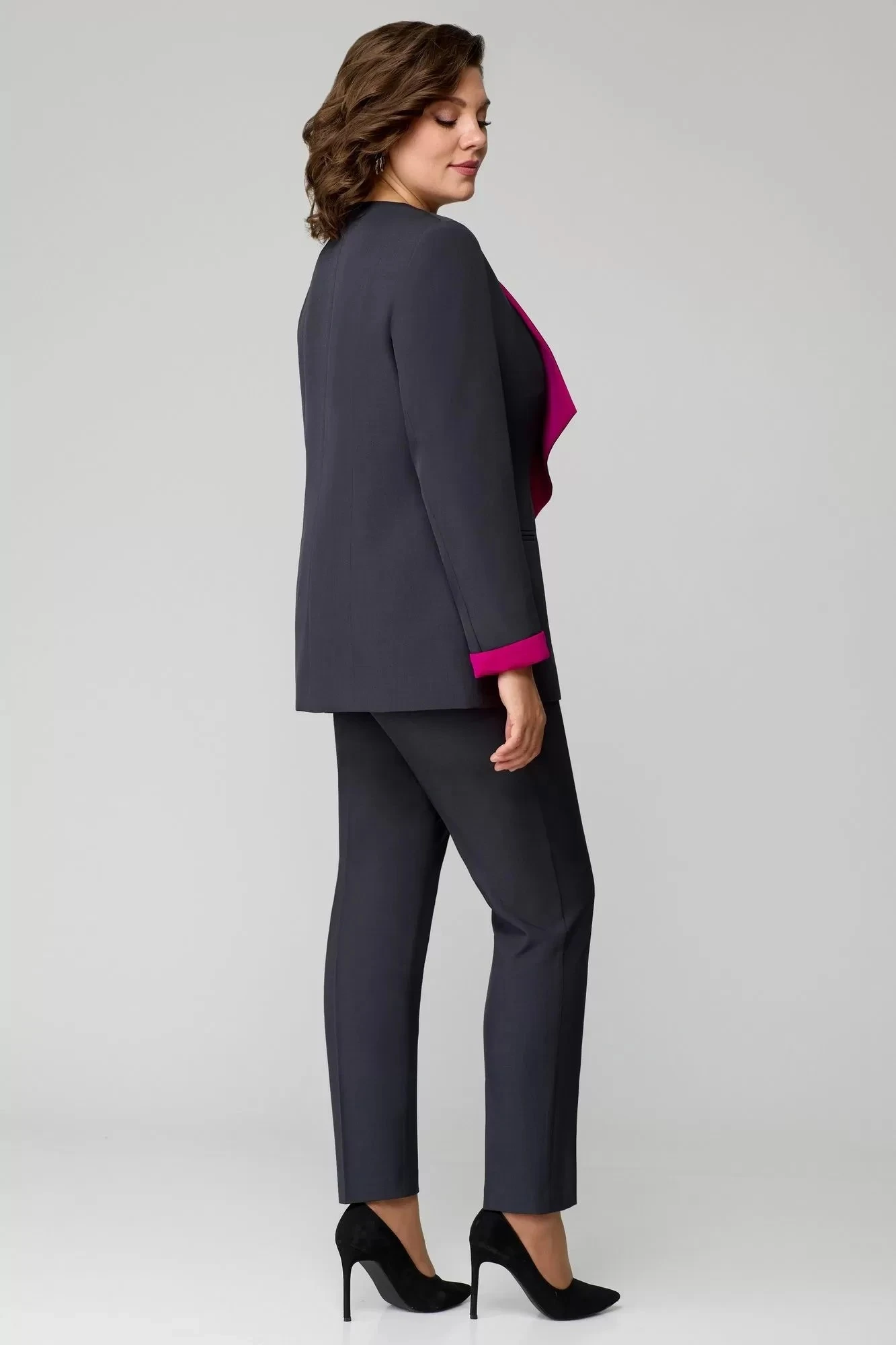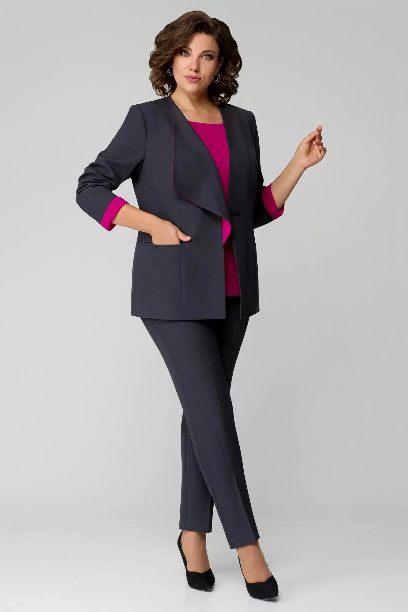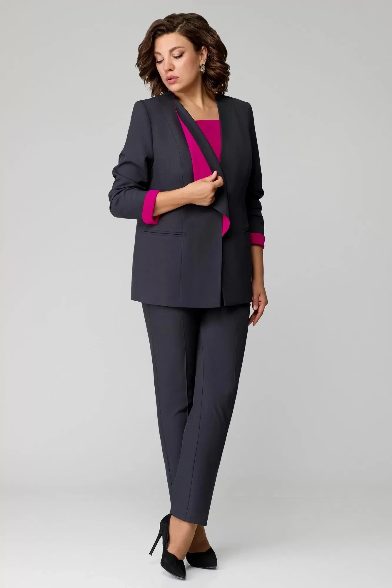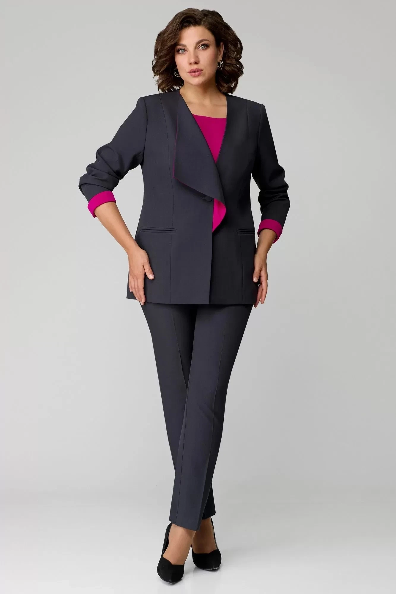 Брючный костюм Мишель Стиль 1145 тройка графит+фуксия