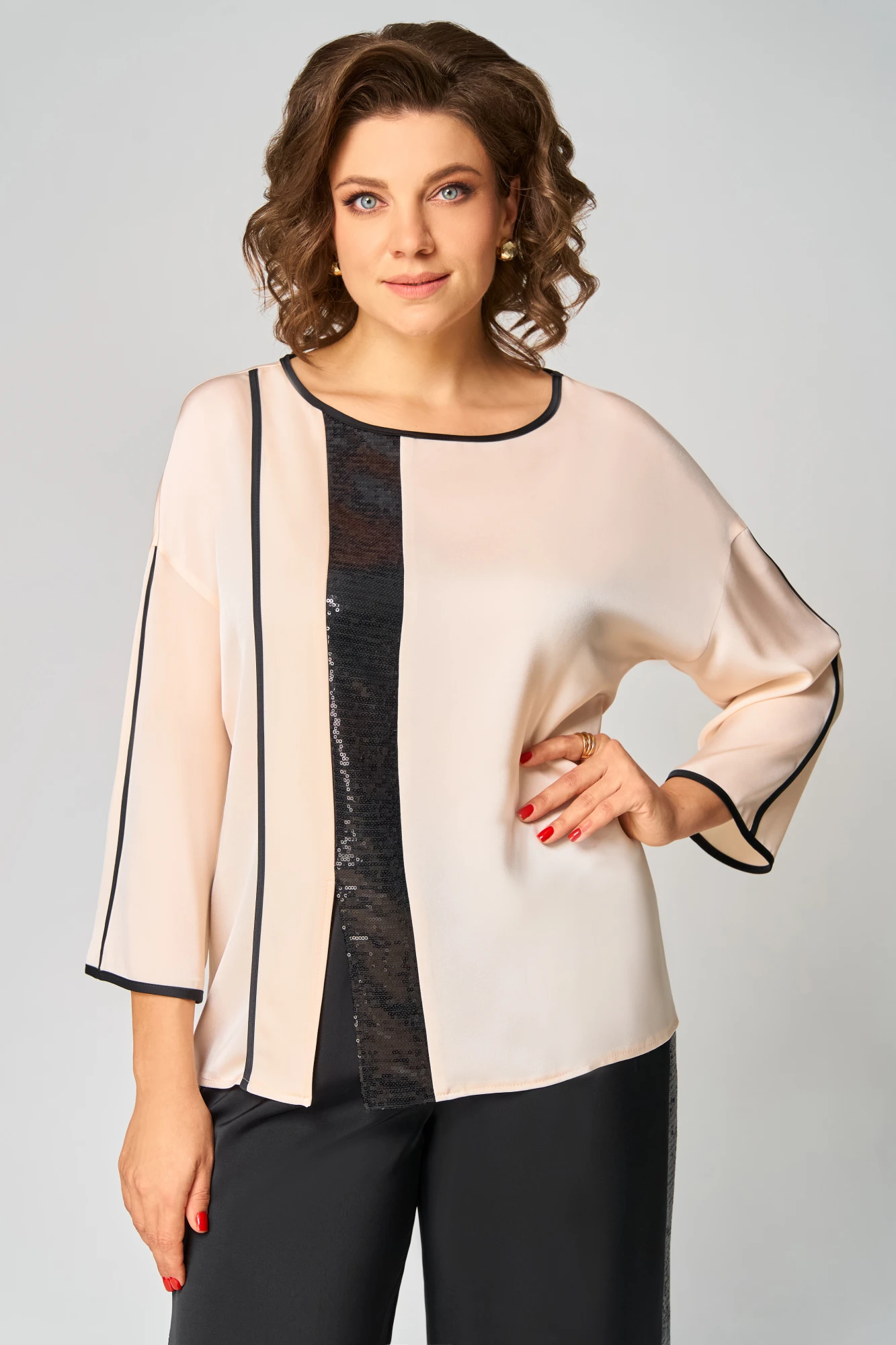 Брючный костюм Мишель Стиль 1327 кремово-черный двойка