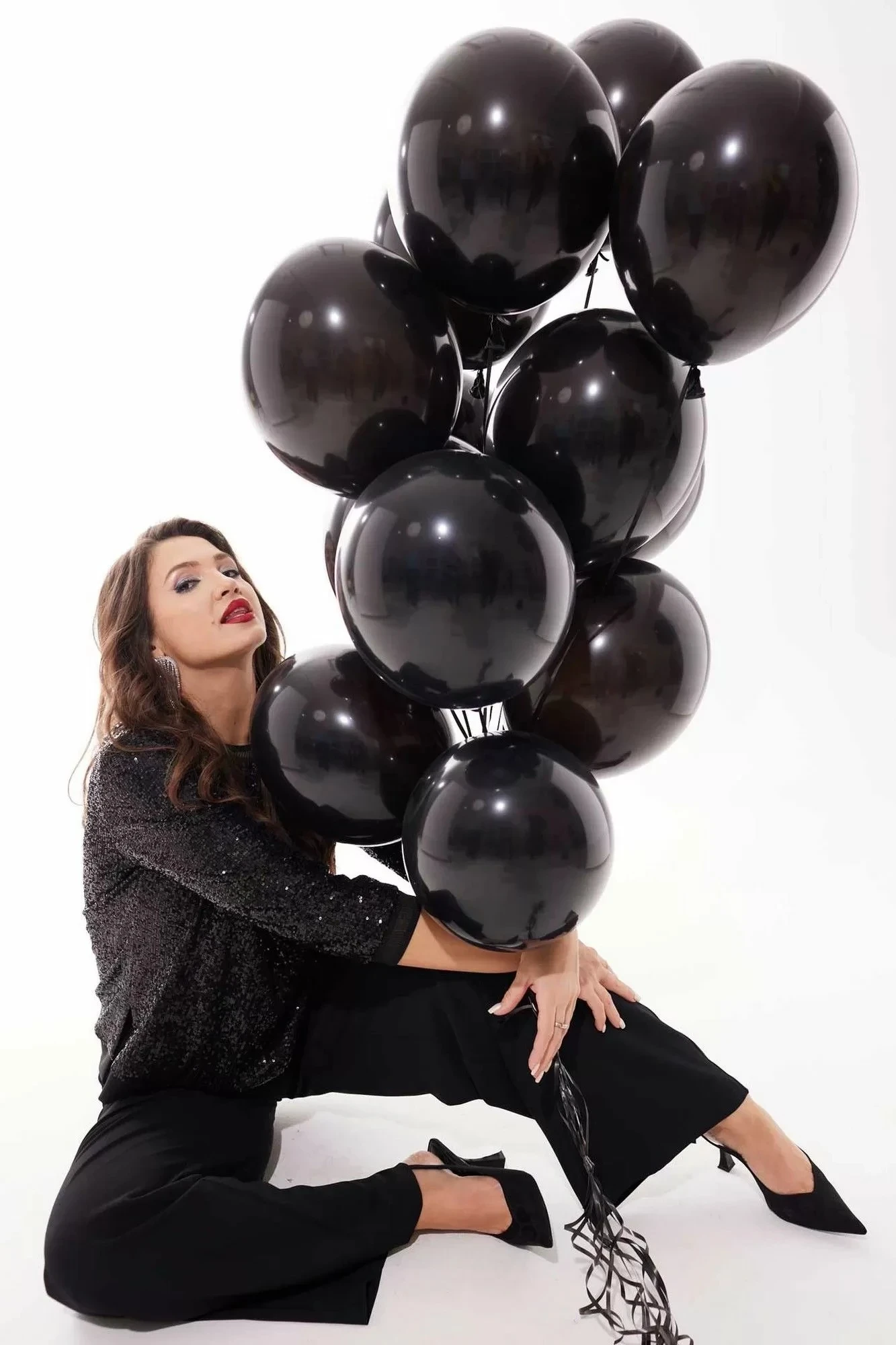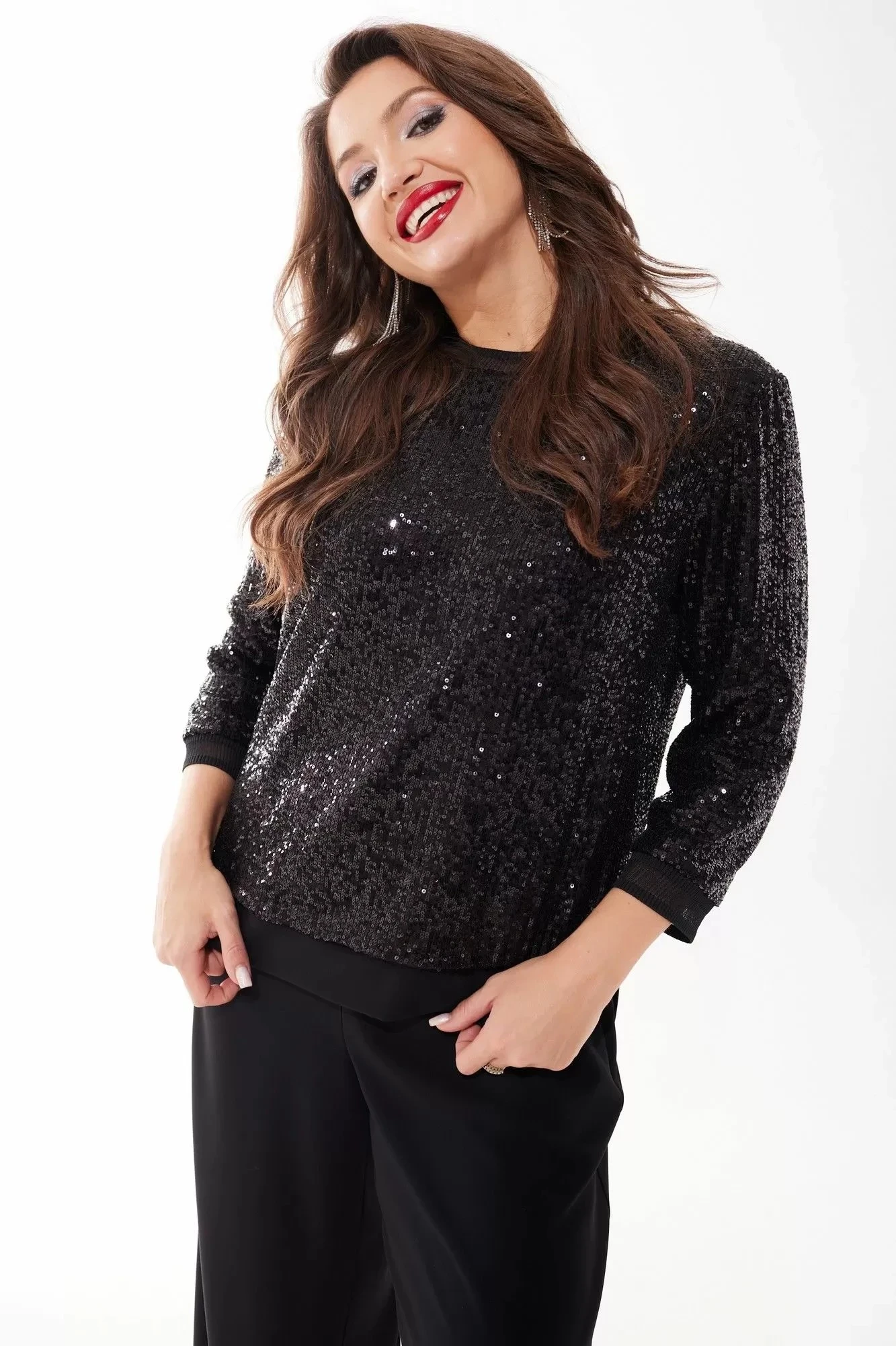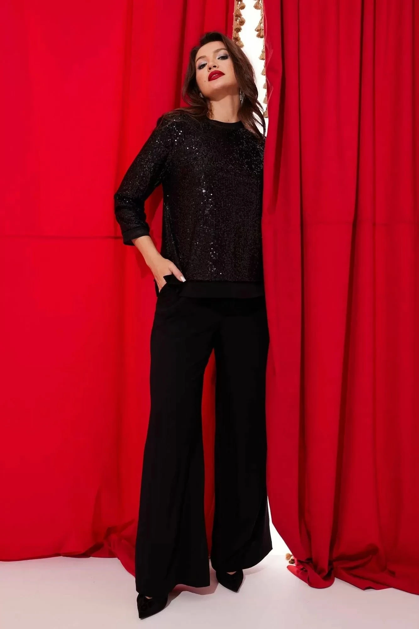 Брючный костюм MisLana 1040 черный (пайетки+текстиль)