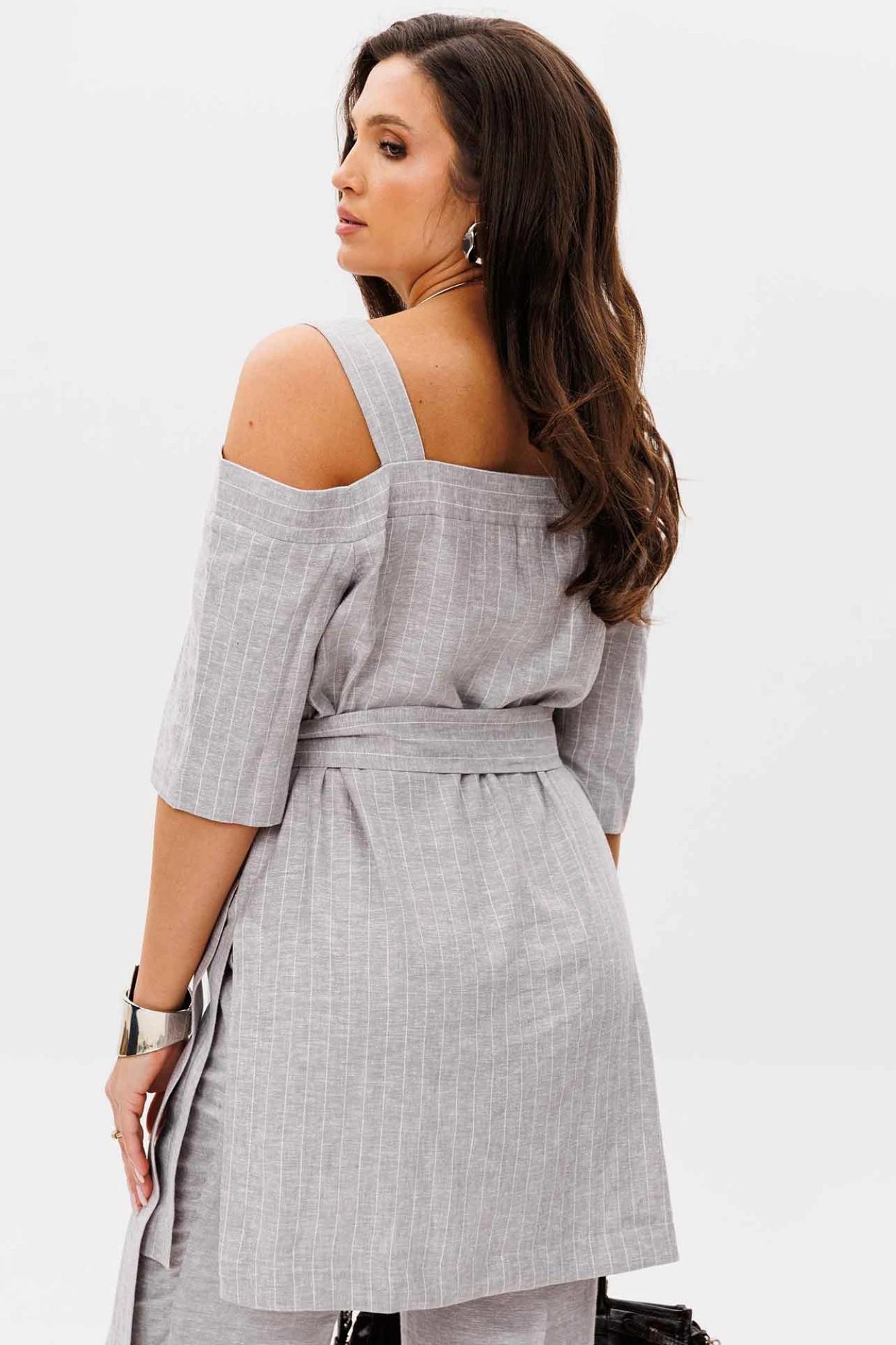 Брючный костюм MisLana 11086 серый, открытые_плечи двойка