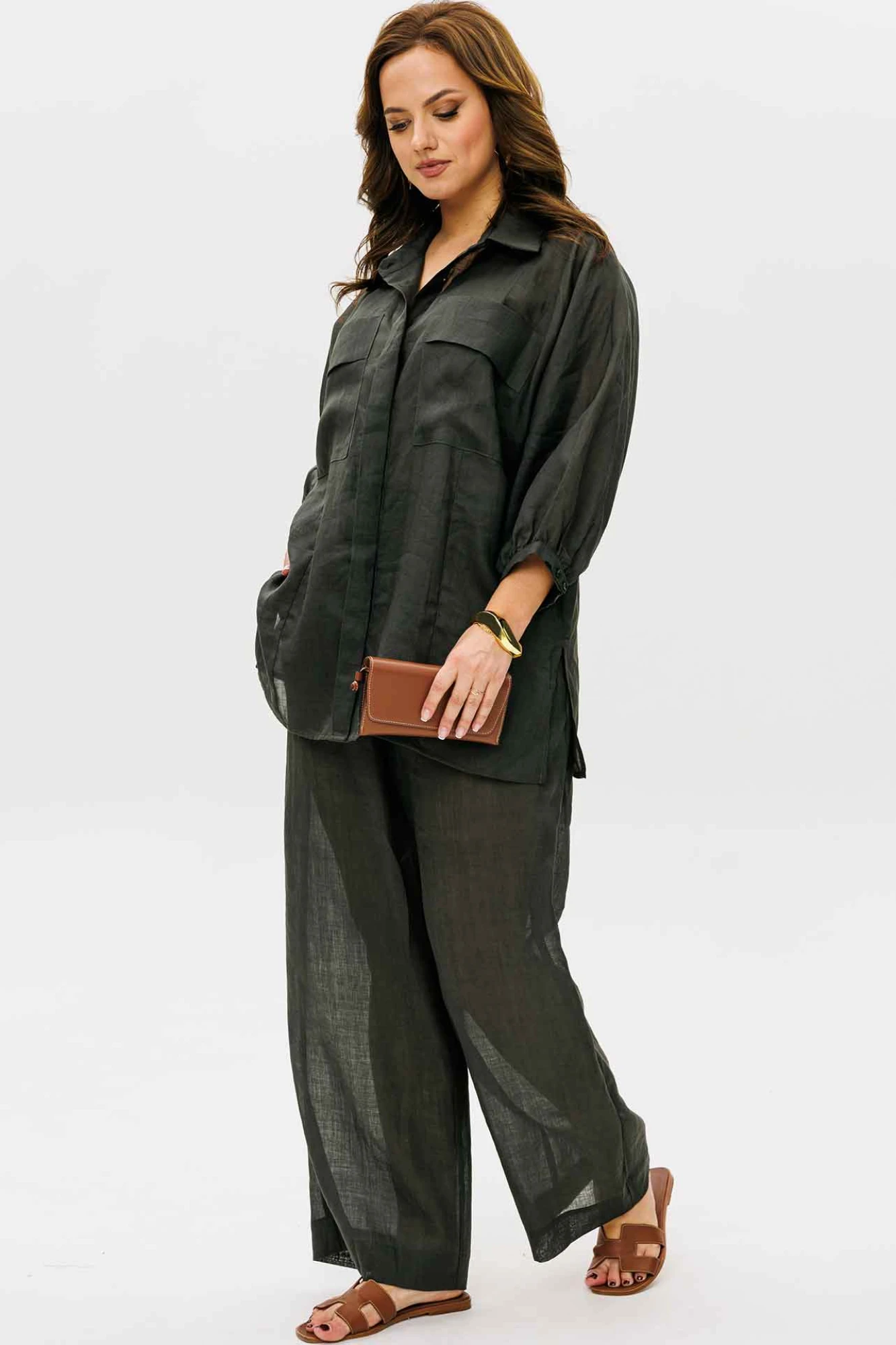 Брючный костюм MisLana 11093 темно-зеленый двойка
