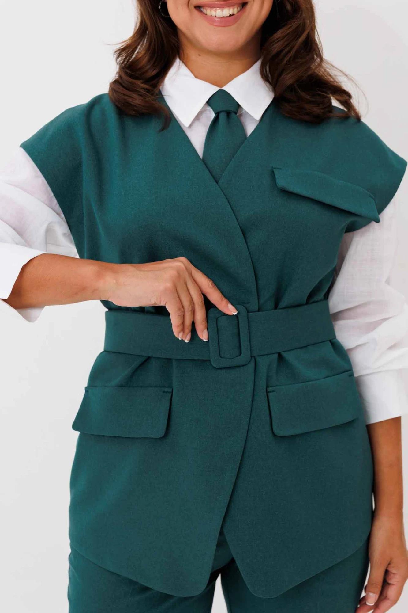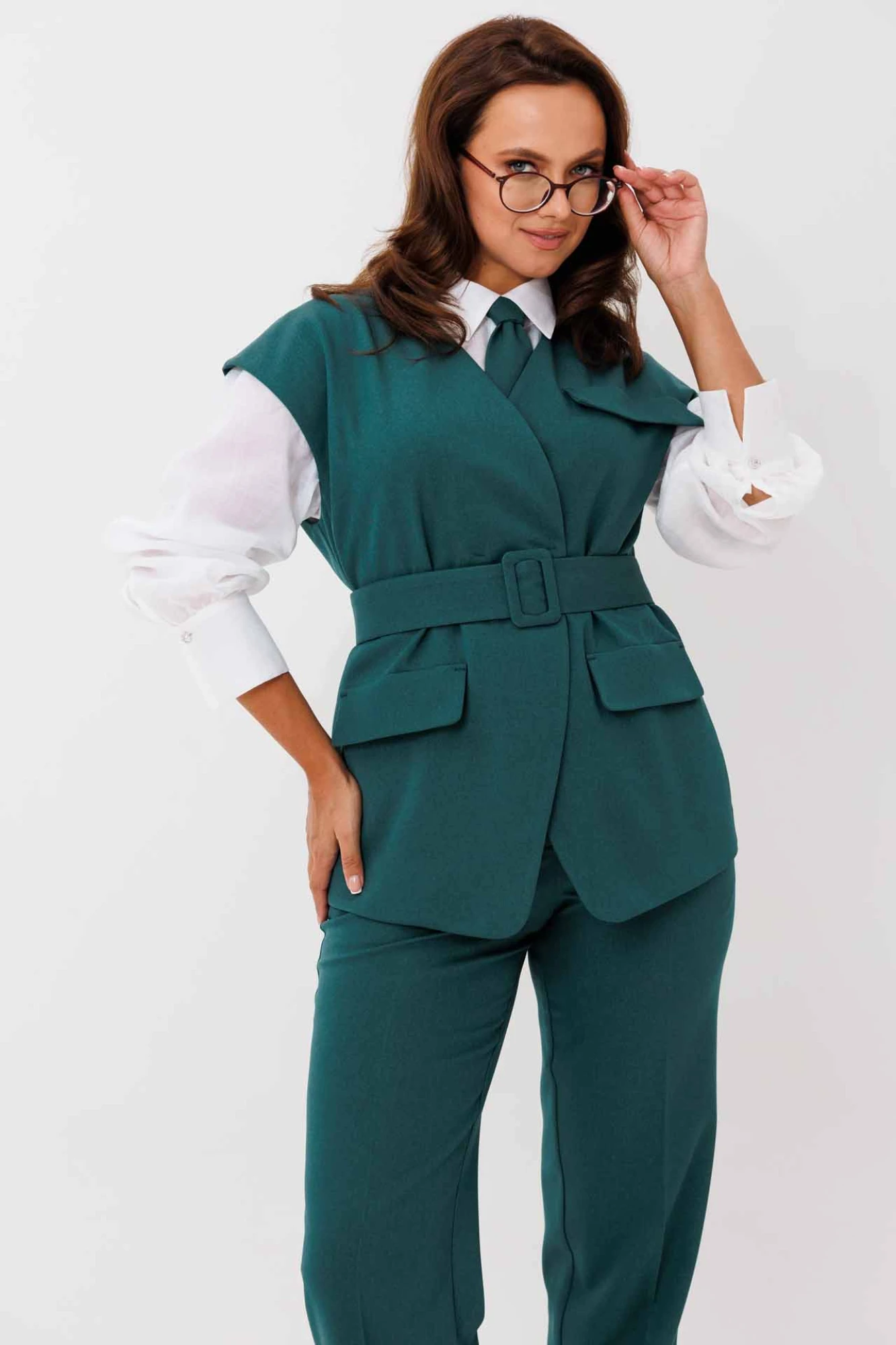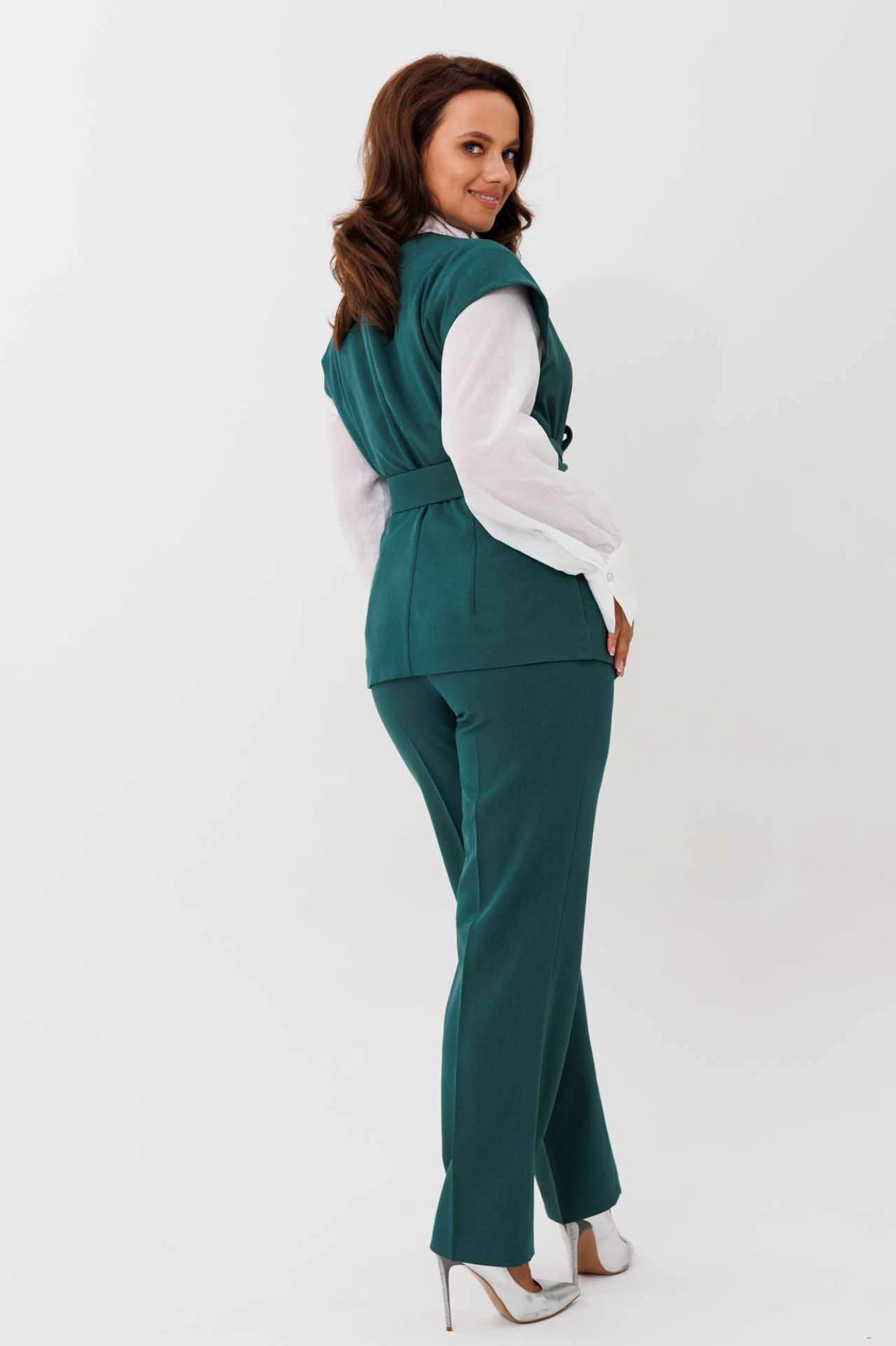 Брючный костюм MisLana 12522 морская волна с белой блузой тройка