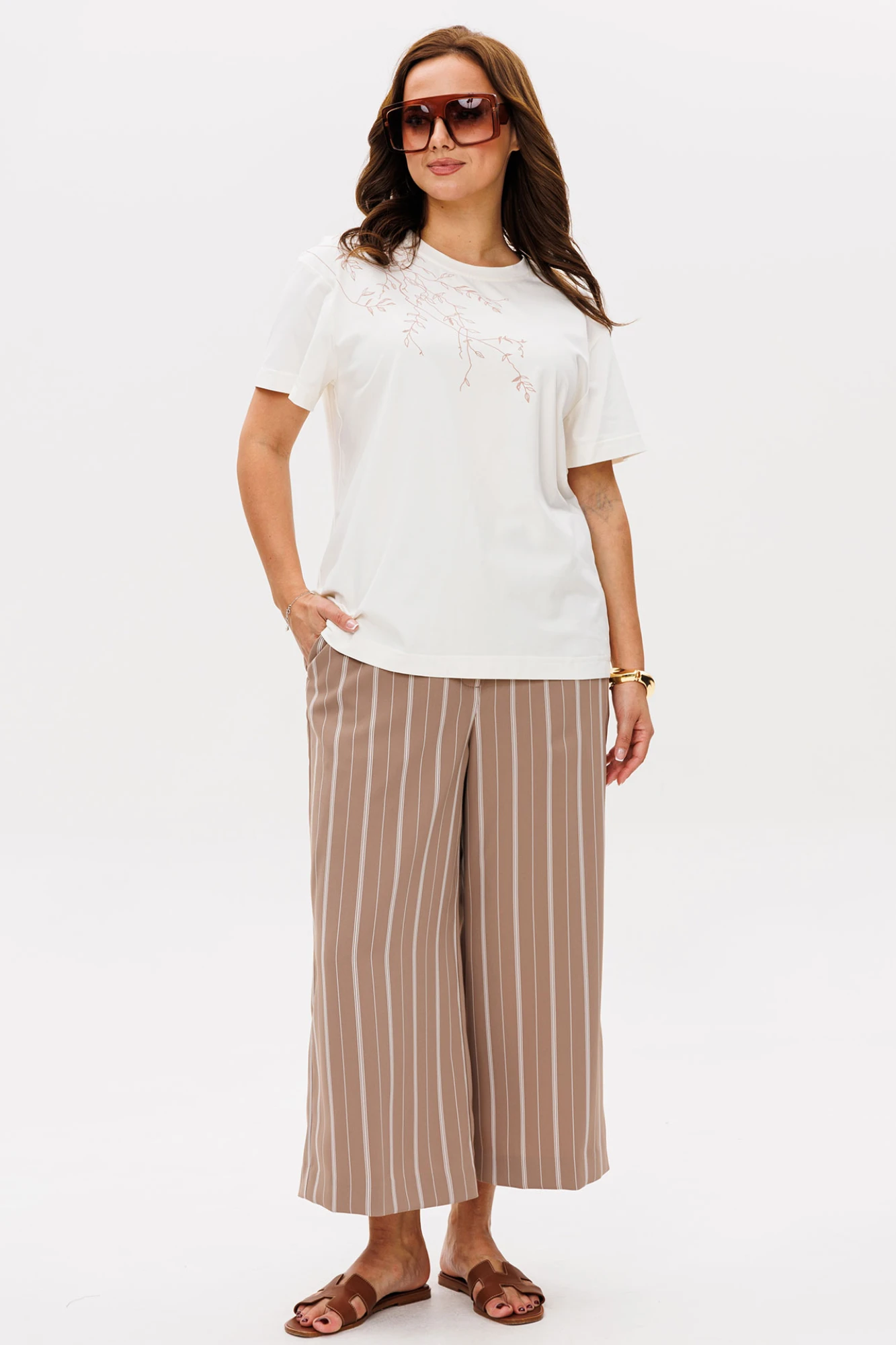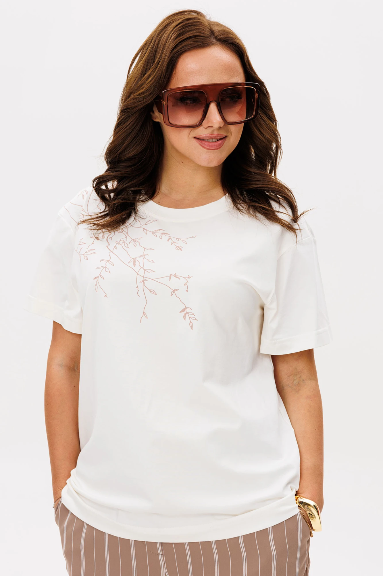 Брючный костюм MisLana 1885 белый/бежевый двойка