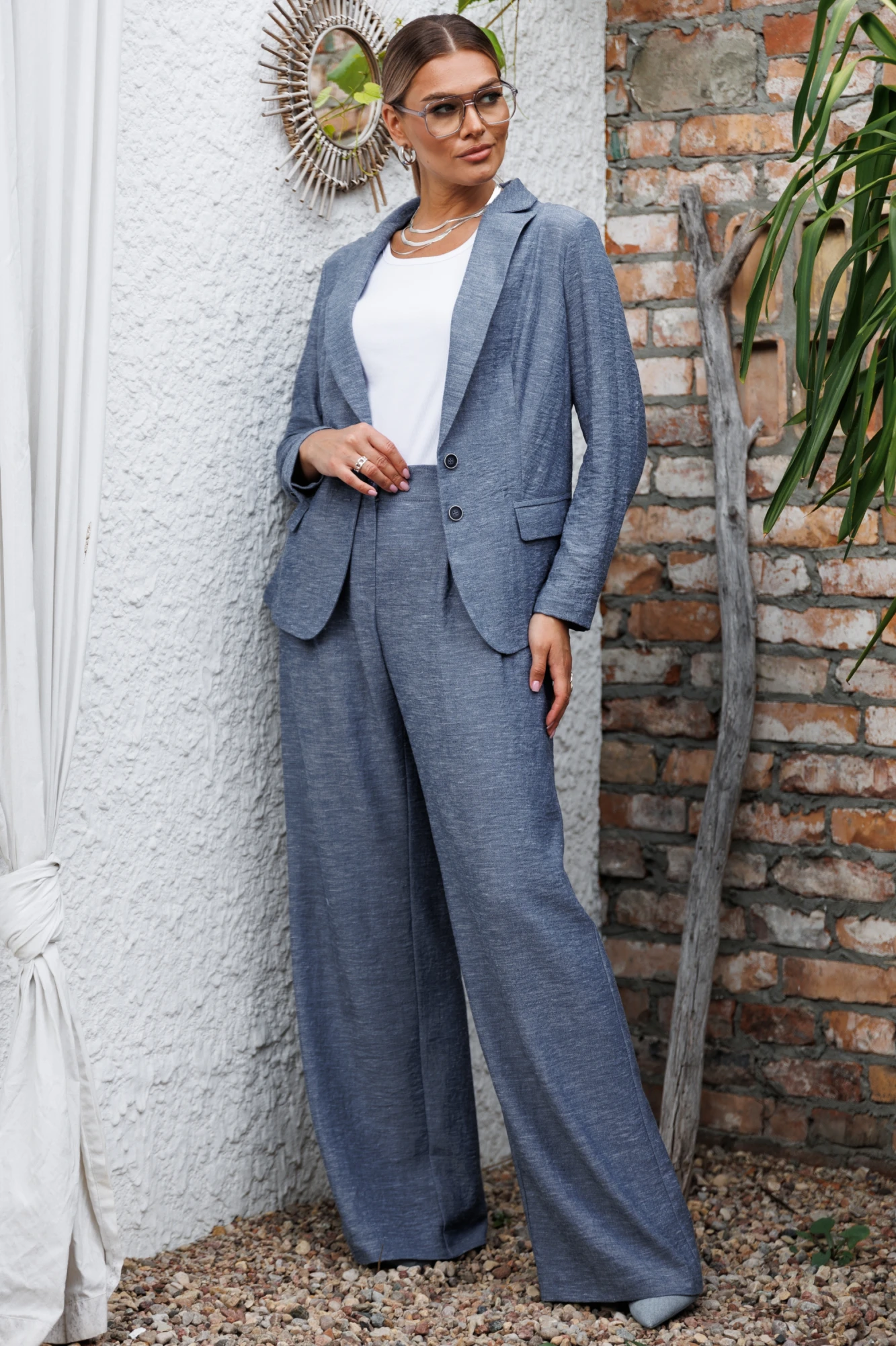 46,48,50, 52Рукава втачные, двухшовные, с шлицей и пуговицами, создают стильный акцент. Центральная застежка на петли и пуговицы добавляет нотку классики. Брюки палаццо с складками от талии обеспечивают комфорт и легкость, а притачной пояс с шлевками и застежка на молнию в среднем шве завершают образ, сочетая элегантность и практичность. Этот костюм станет отличным выбором для любого мероприятия, подчеркивая ваш утонченный вкус.