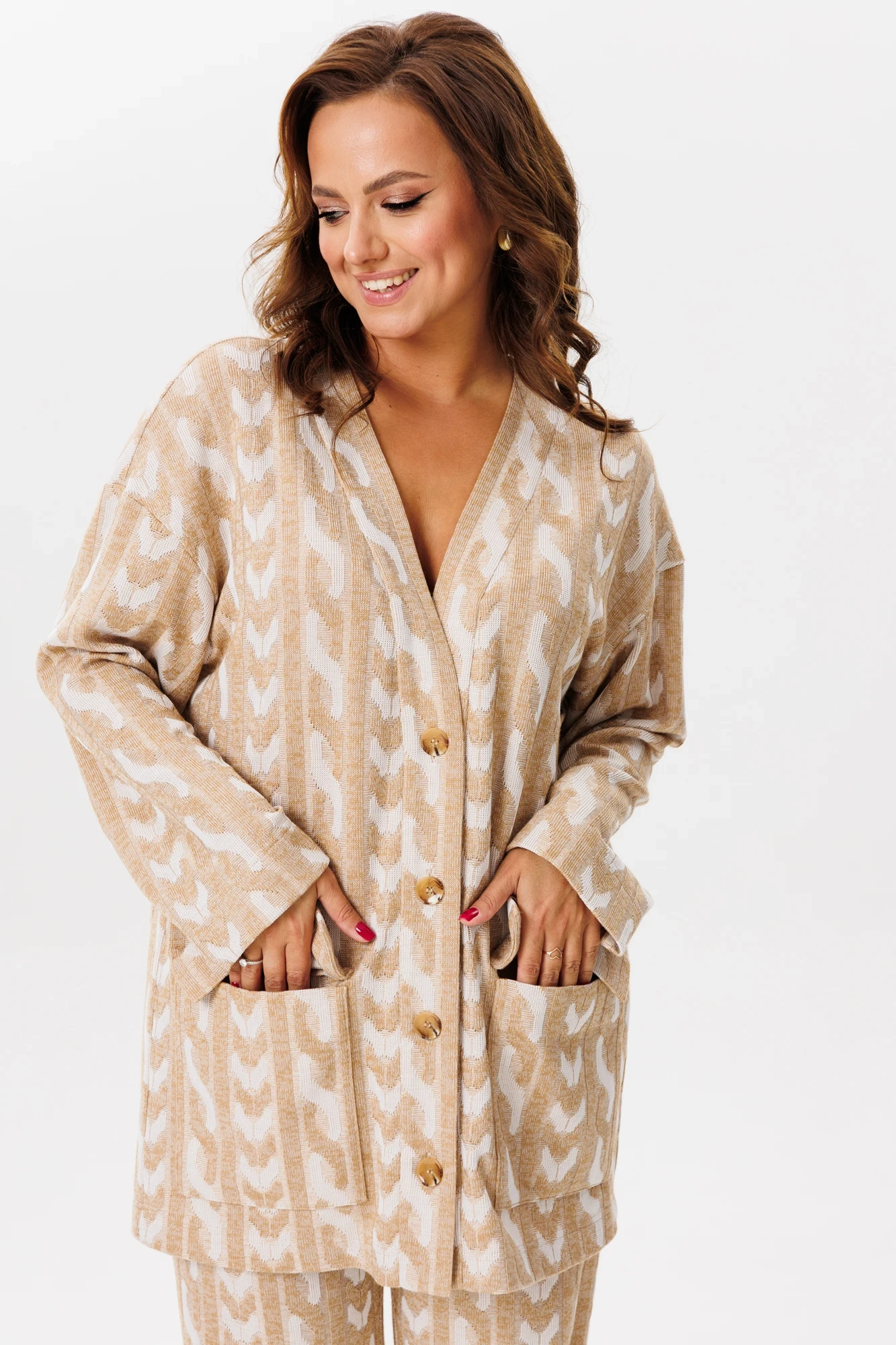 56Брюки свободного прямого кроя, в боковых швах карманы. Верхний срез брюк обработан поясом с резинкой.