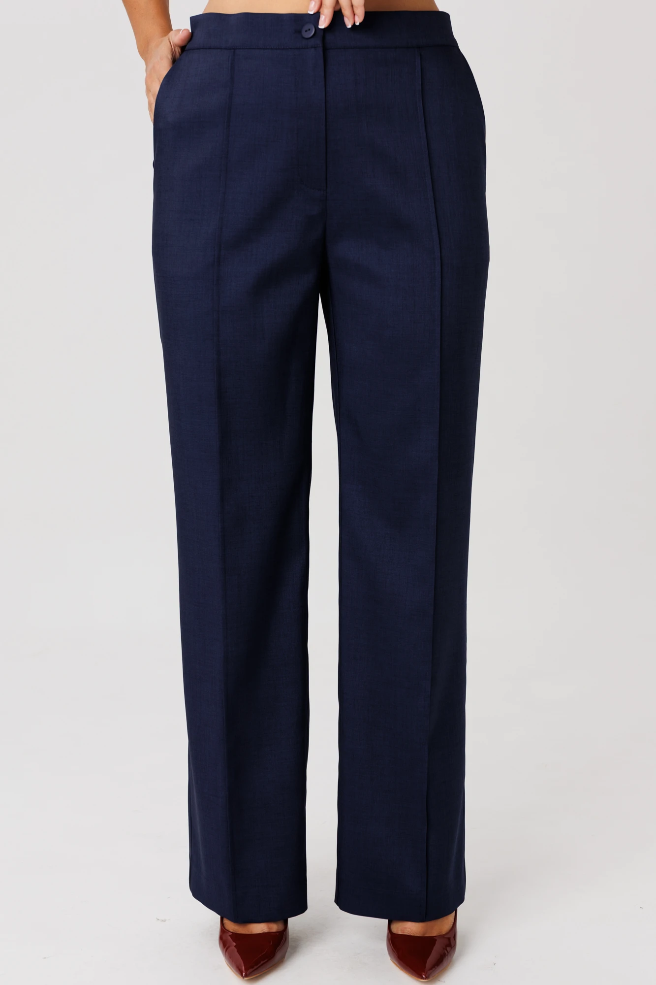 Брюки свободного кроя с высокой посадкой. В боковых швах функциональные карманы. Верхний срез брюк обработан притачным поясом с резинкой в боковых швах. Застежка в брюках на тесьму-молнию.