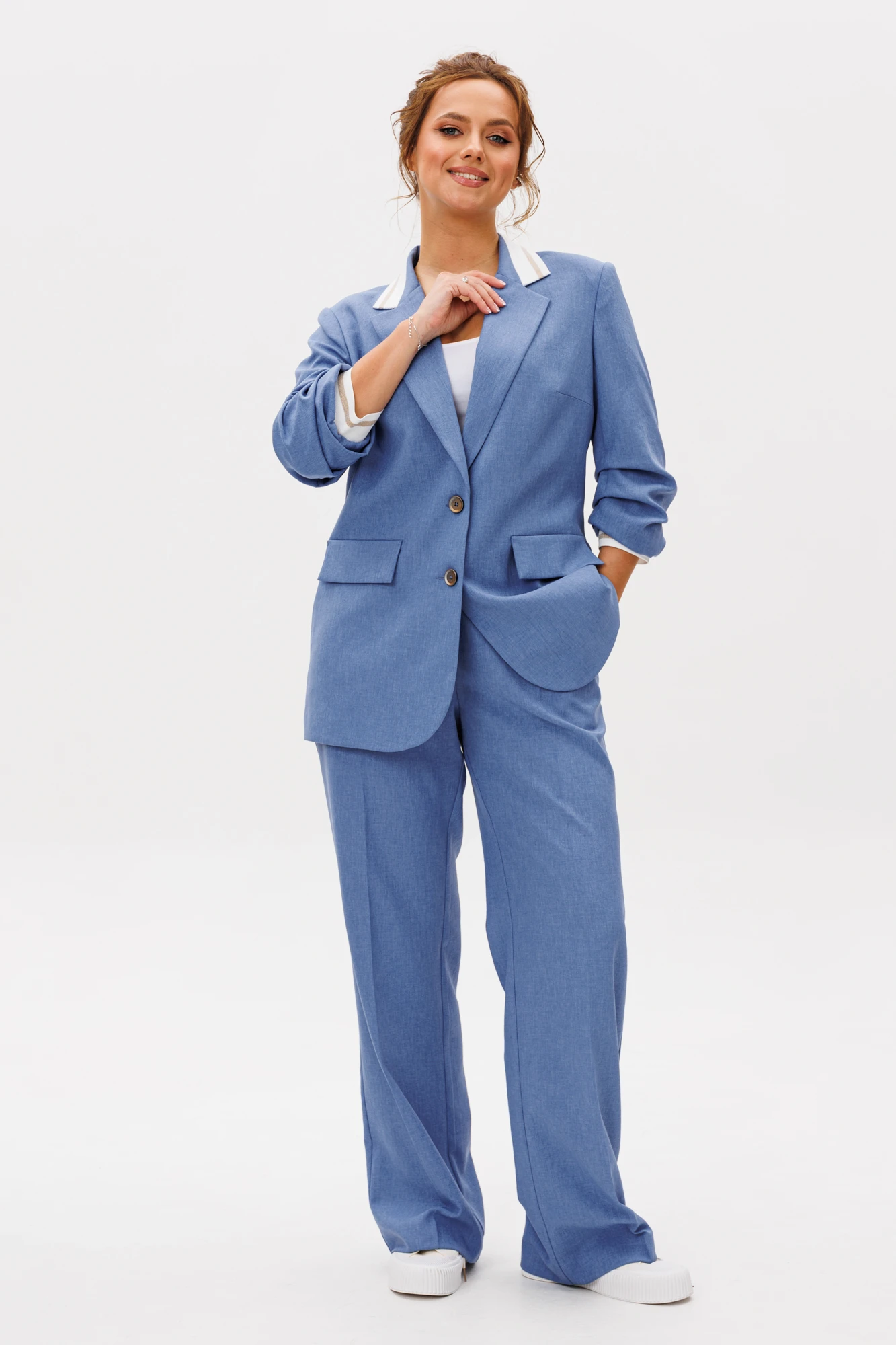 48,50, 52 , 54 , 56 ,58,60Брюки свободного прямого кроя с высокой посадкой из костюмной ткани (тянется). В боковых швах функциональные карманы. По срезу банта – застежка-молния. Верхний срез оформлен поясом с эластичной резинкой по задней половинке.