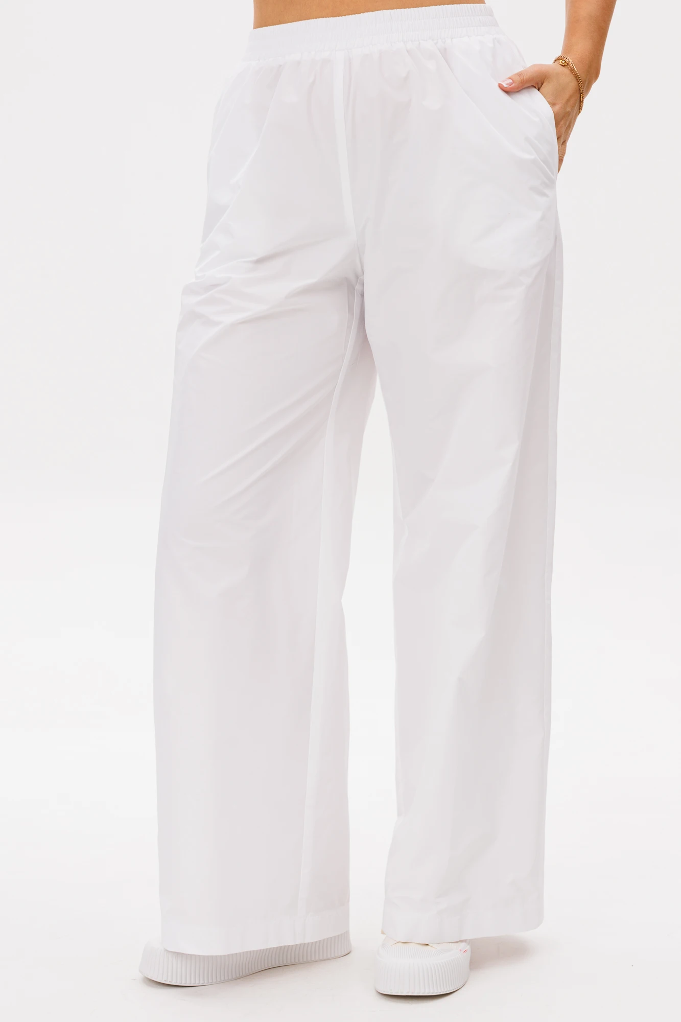 Брюки свободного прямого кроя с высокой посадкой. В боковых швах функциональные карманы. Верхний срез оформлен поясом с эластичной резинкой (пояс брюк полностью на резинке).