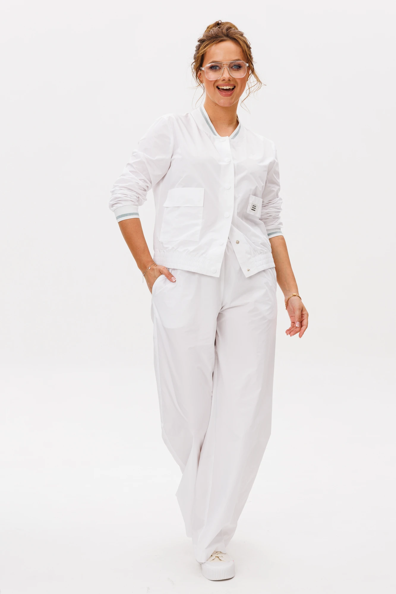 Брюки свободного прямого кроя с высокой посадкой. В боковых швах функциональные карманы. Верхний срез оформлен поясом с эластичной резинкой (пояс брюк полностью на резинке).
