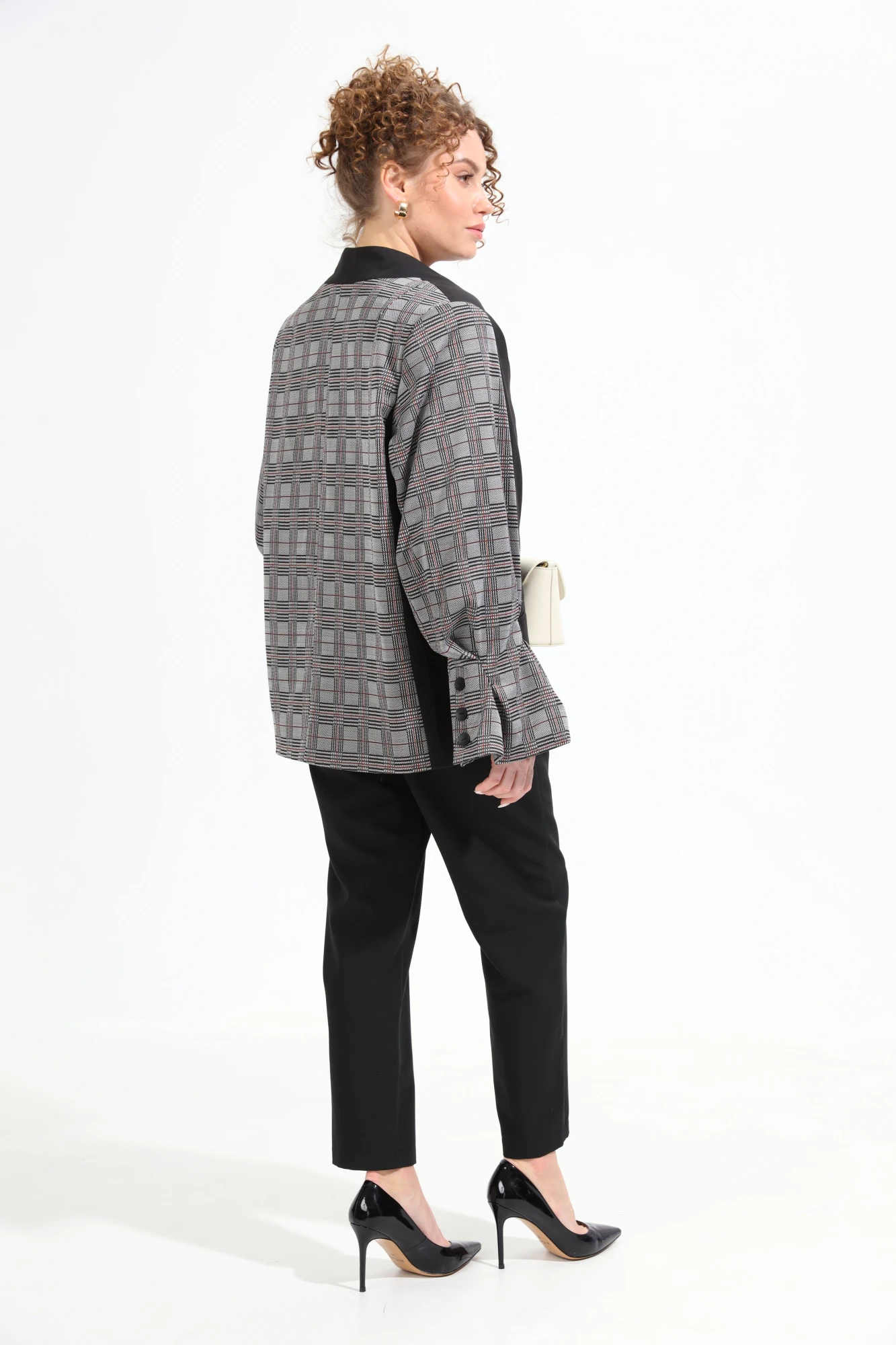 Брючный костюм NikVa 950-1 чёрный+серая клетка двойка