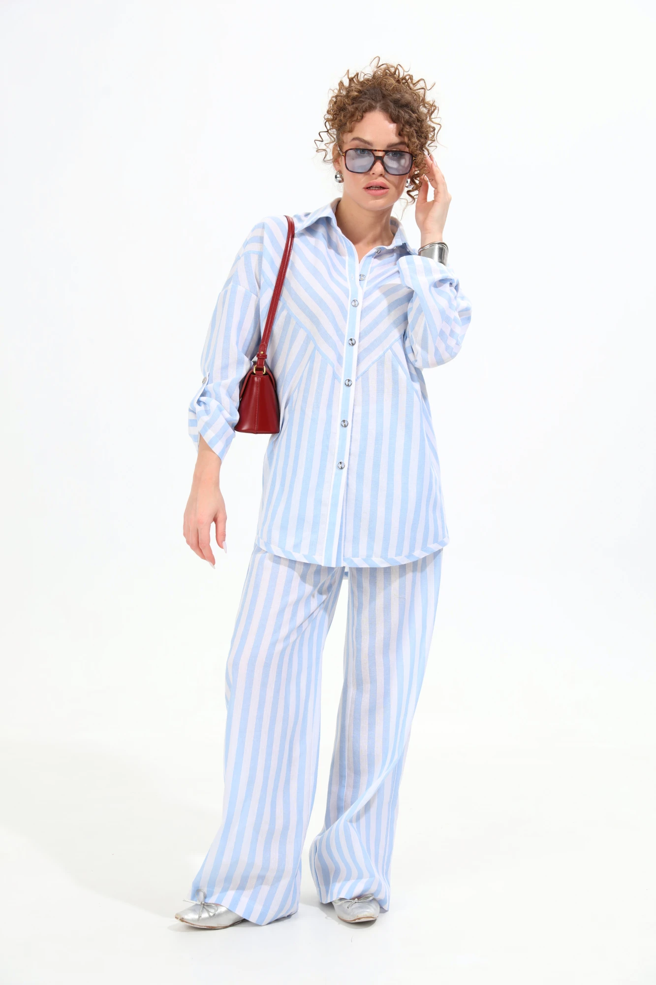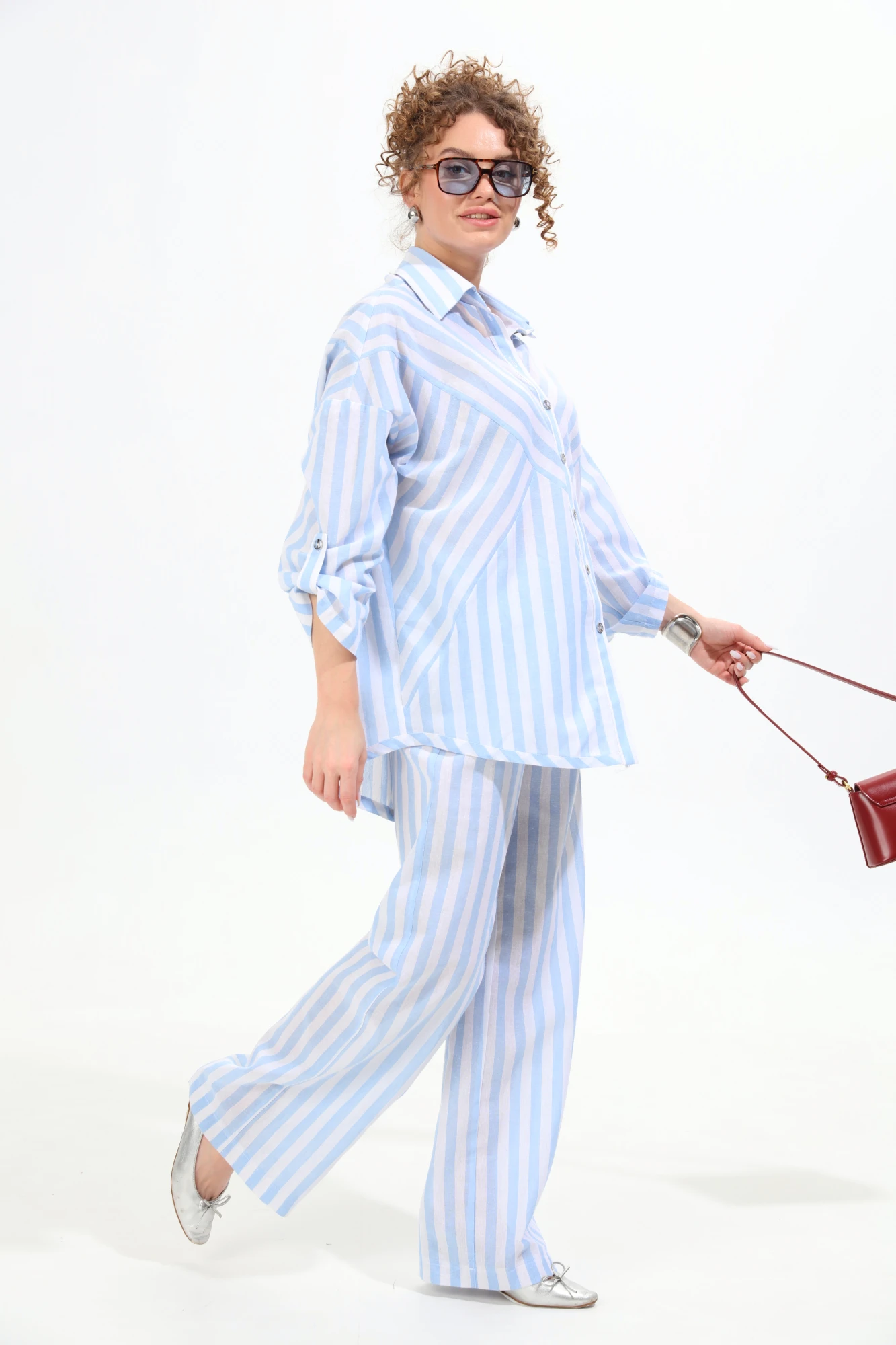Брючный костюм NikVa 961-2 бело-голубые полосы двойка