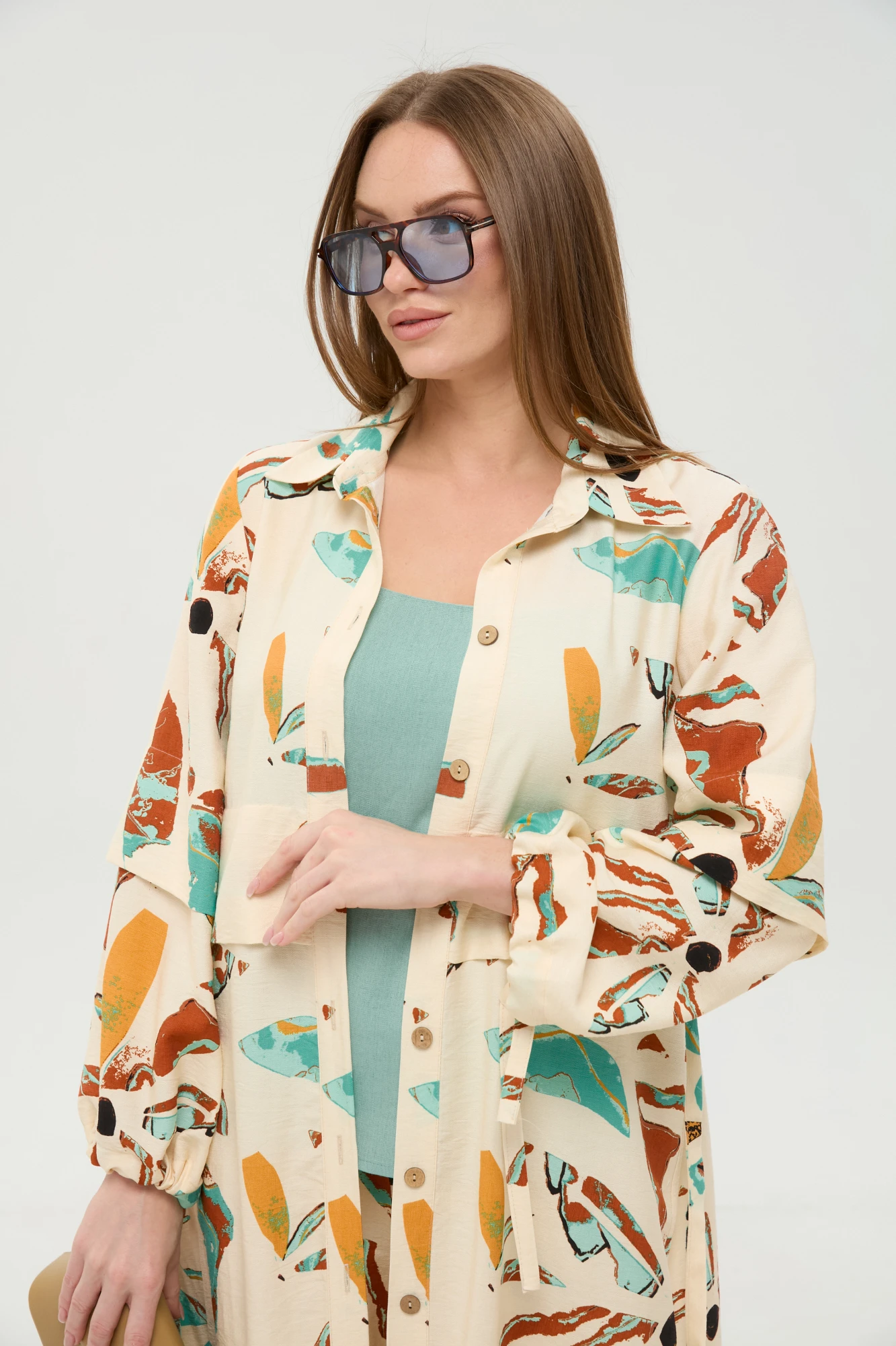 Брючный костюм NikVa 976-7 мята_и_бохо_мультиколор тройка