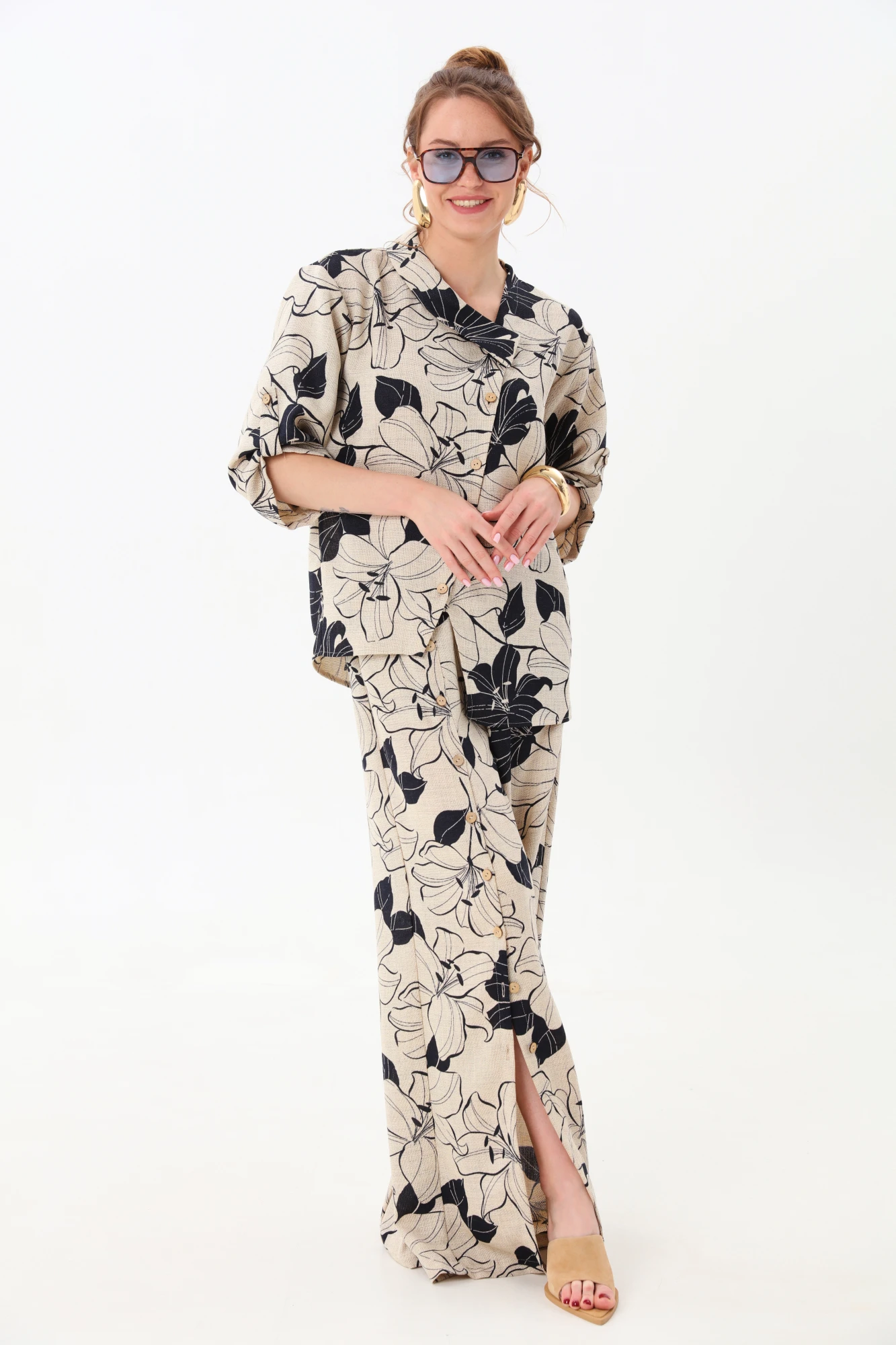 Брючный костюм NikVa 978-2 сине-песочные_лилии двойка