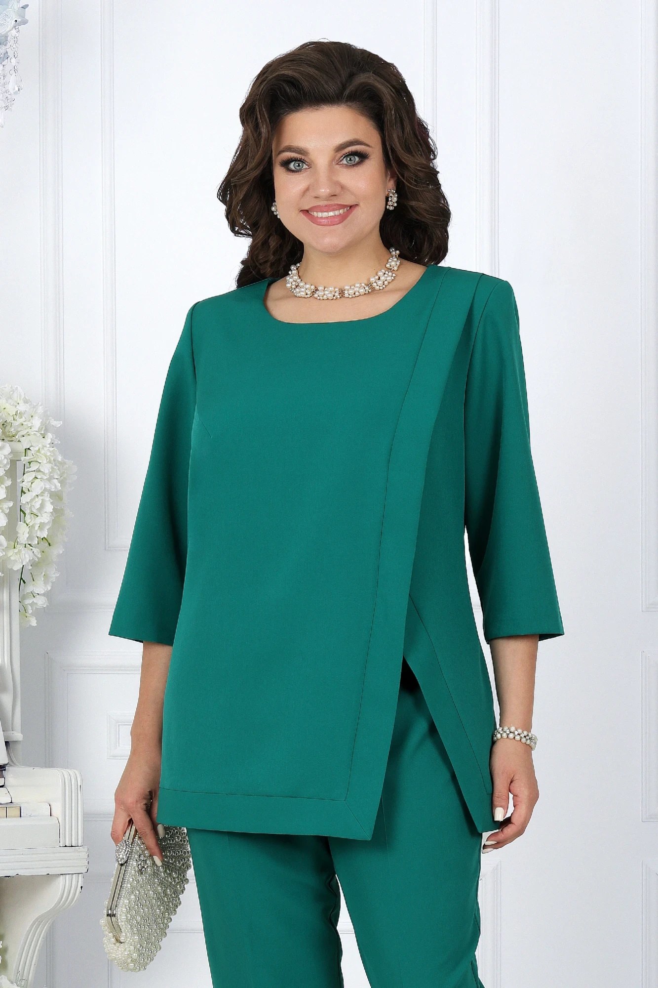 Брючный костюм Нинель Шик 5733 зеленый двойка