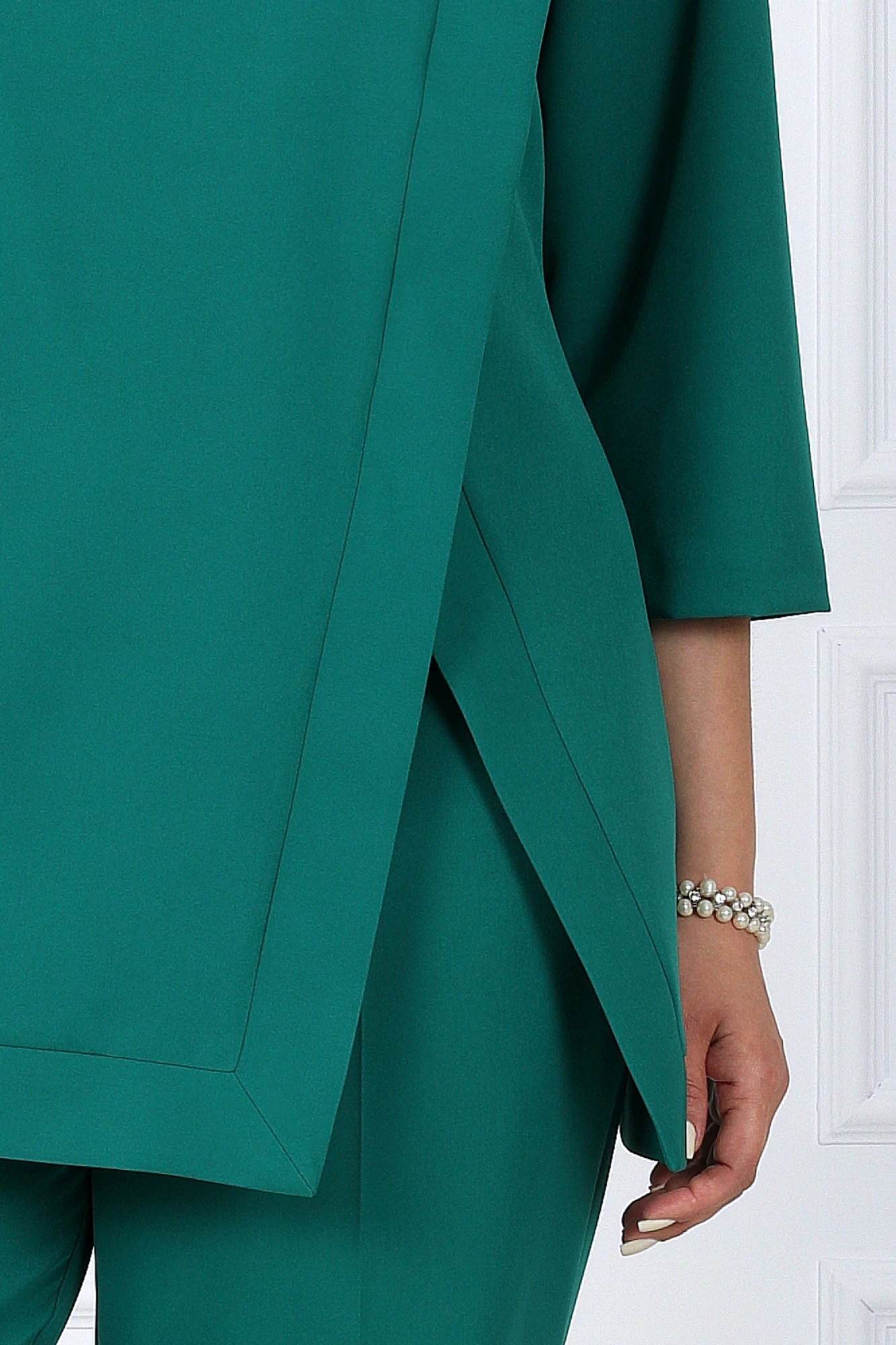 Этот костюм помогает создать образ идеальной и неотразимой женщины в рабочей обстановке. Выразительный дизайн и комфорт материала делают этот костюм невероятно универсальным – он подходит как для деловых встреч, так и для вечерних мероприятий.