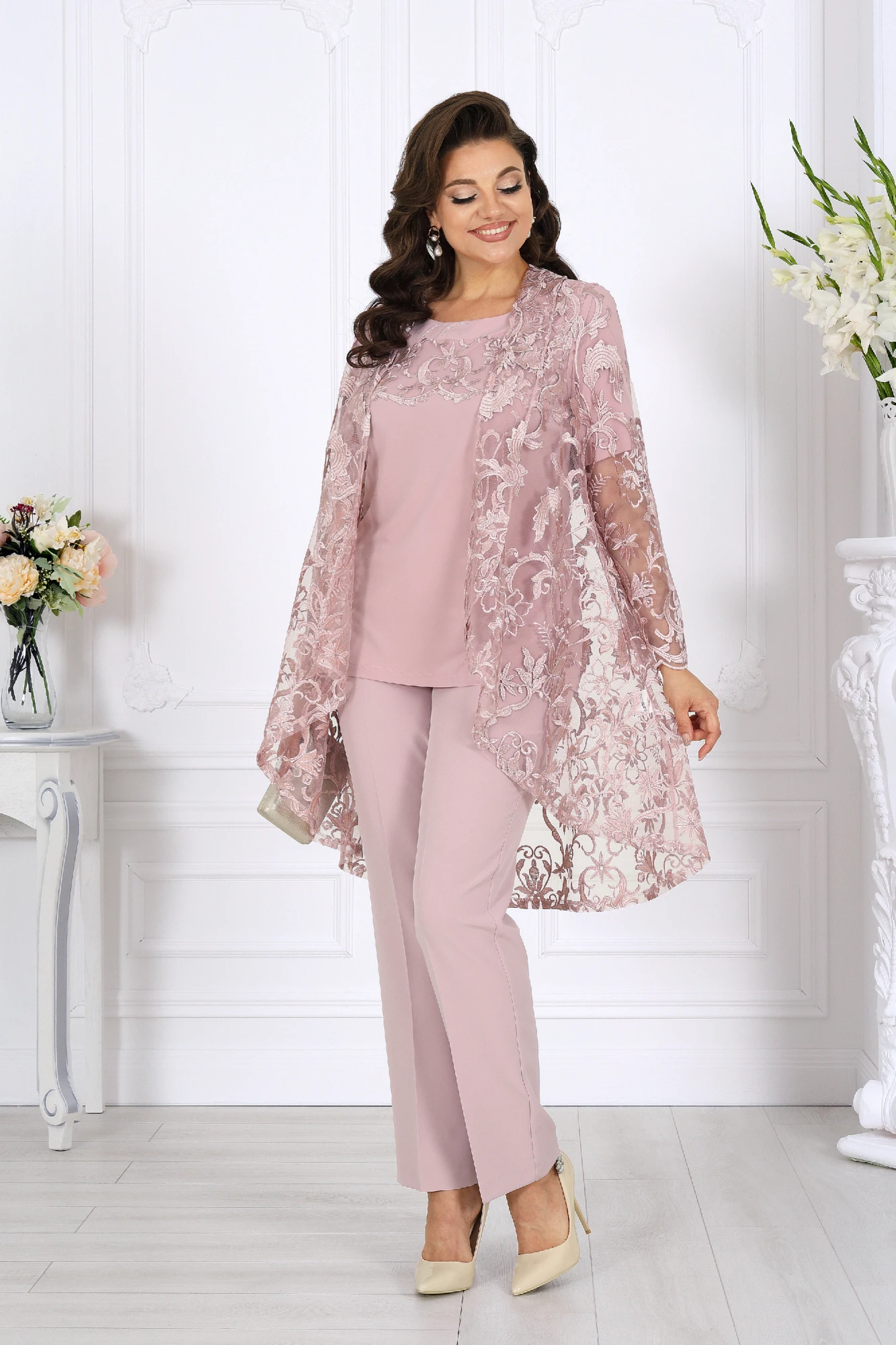 Брючный костюм Нинель Шик 5908 пудра тройка