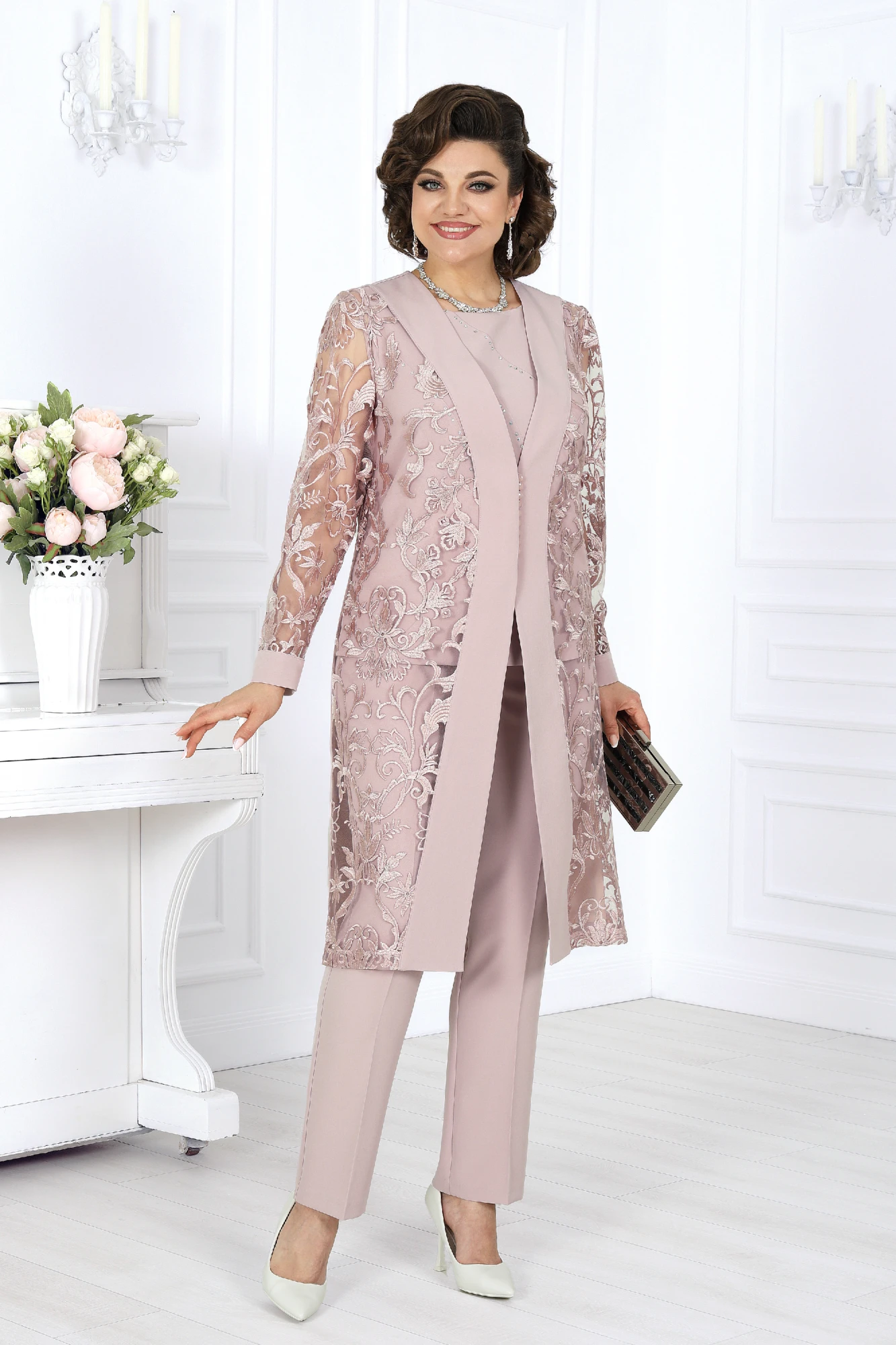 Брючный костюм Нинель Шик 6038 пудра тройка