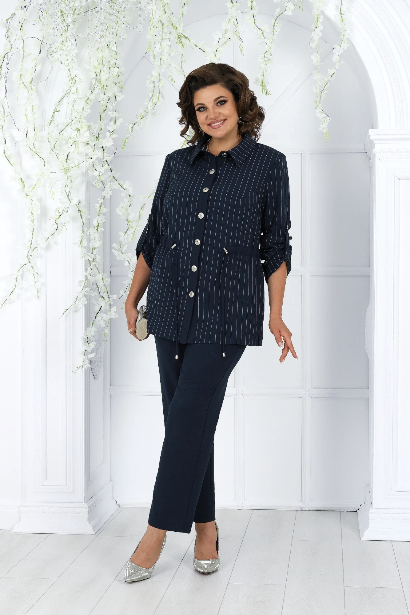 Брючный костюм Нинель Шик 7463 синий тройка