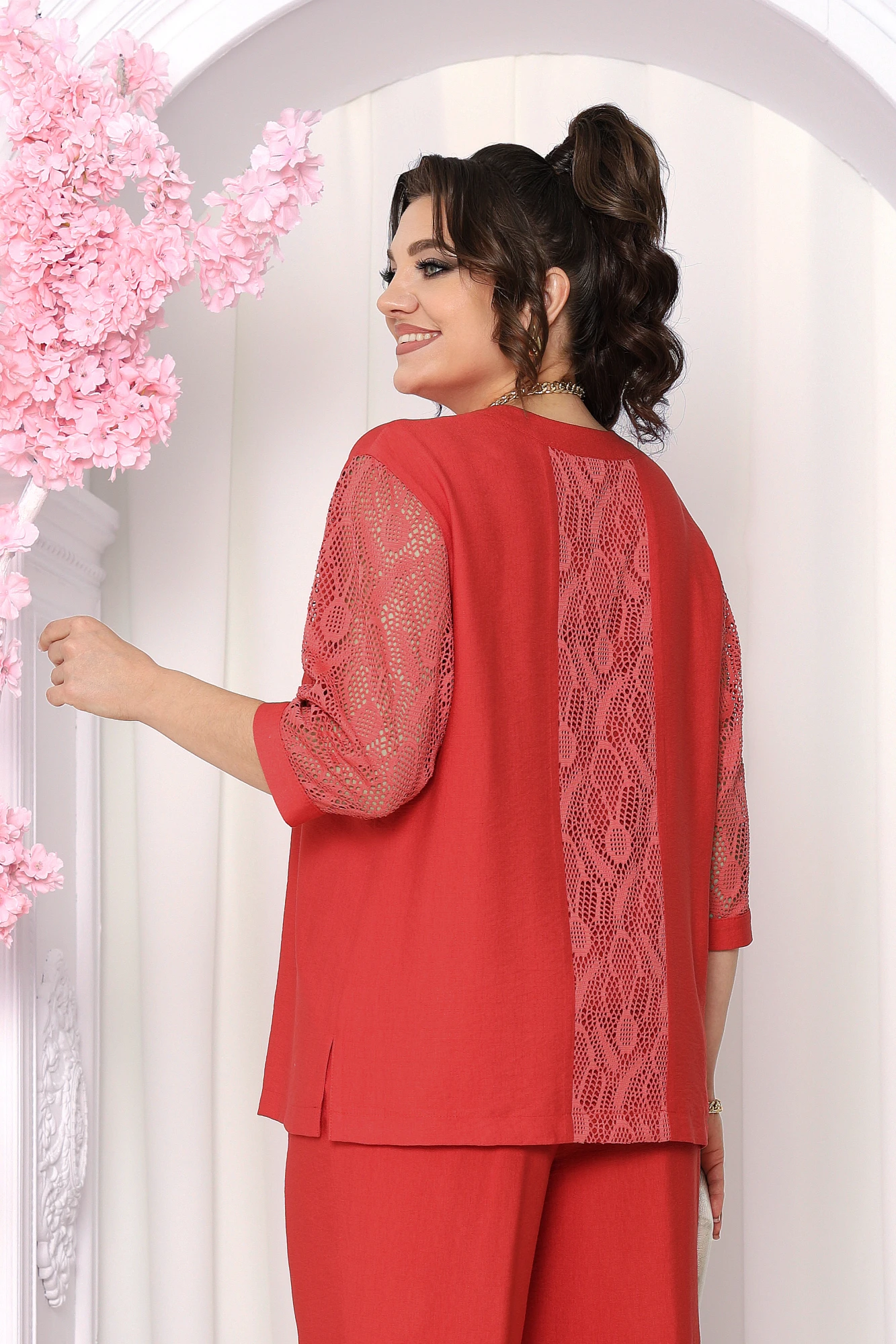 Брючный костюм Нинель Шик 7487 красный двойка