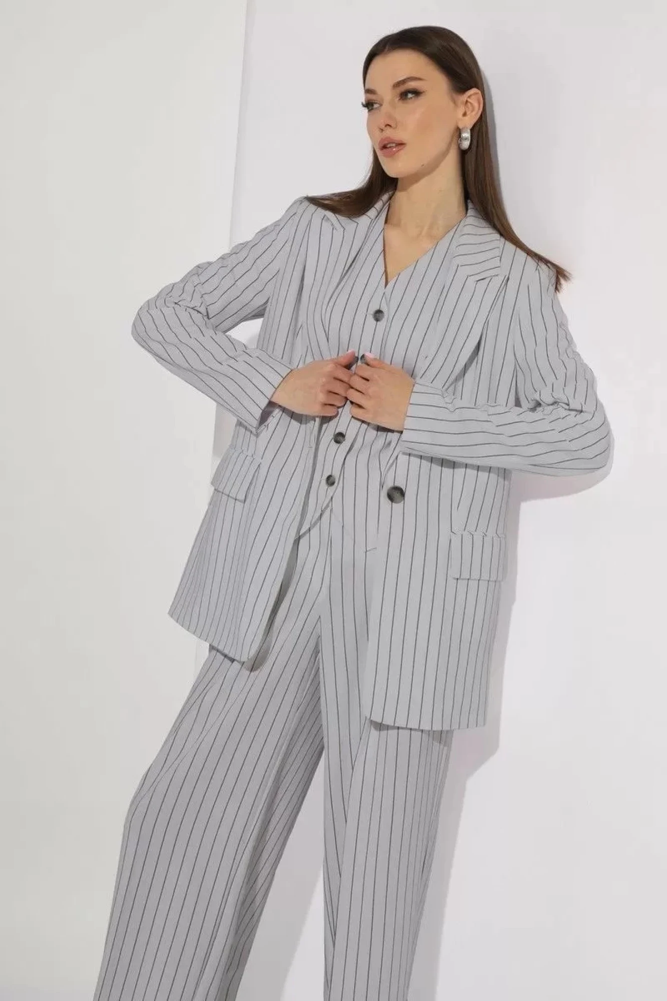 42,44,46, 48 ,50, 52Жакет прямого силуэта, на подкладке. Воротник пиджачного типа. Застежка на одну петлю и пуговицу. Карманы функциональные прорезные в рамку с клапаном.