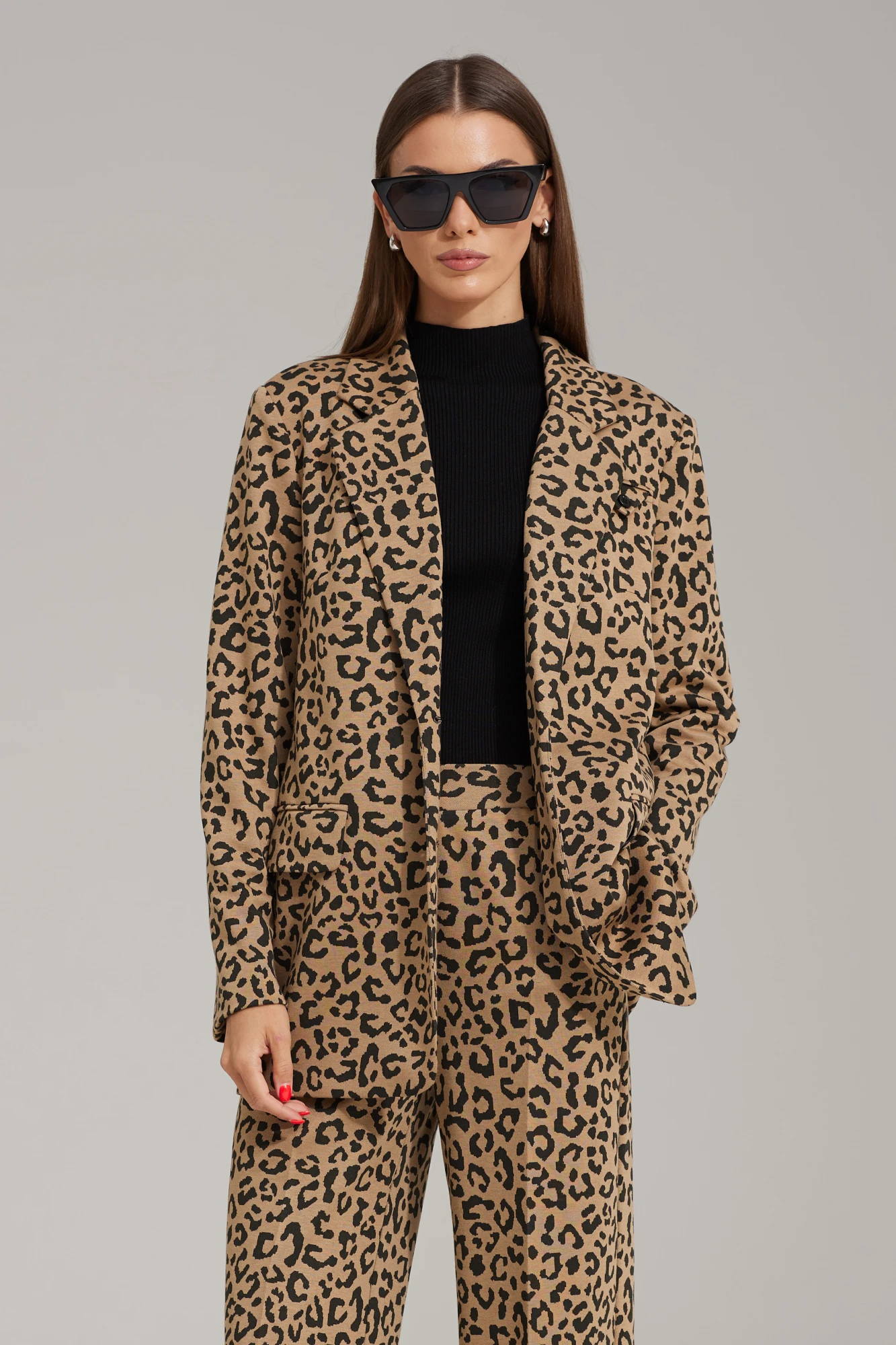 Комплект женский, состоящий из жакета и брюк. Выполнен из трикотажного полотна, дизайн леопард.