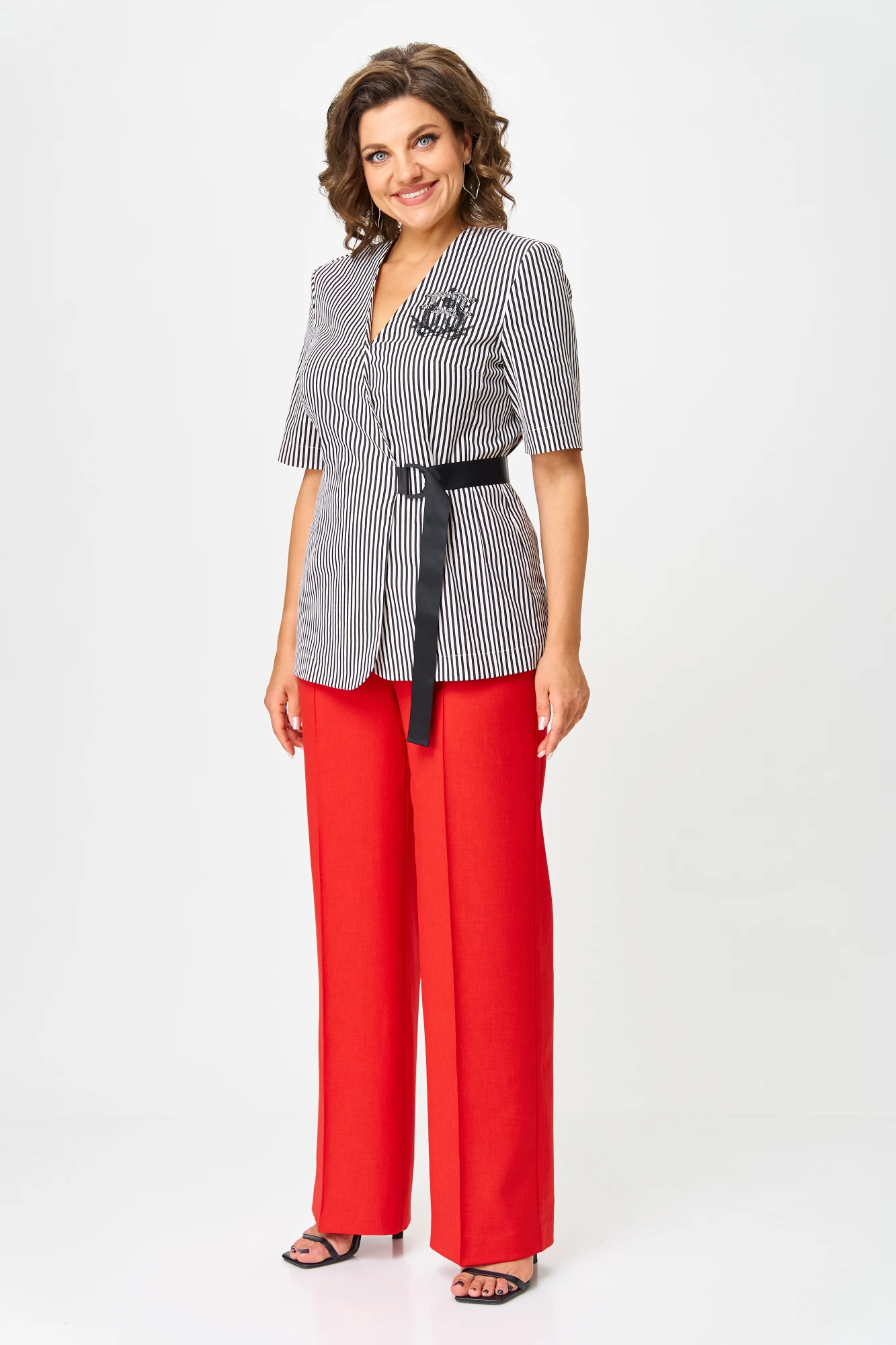 Брючный костюм Орхидея Люкс 1572 Черно-белая полоска, красный двойка