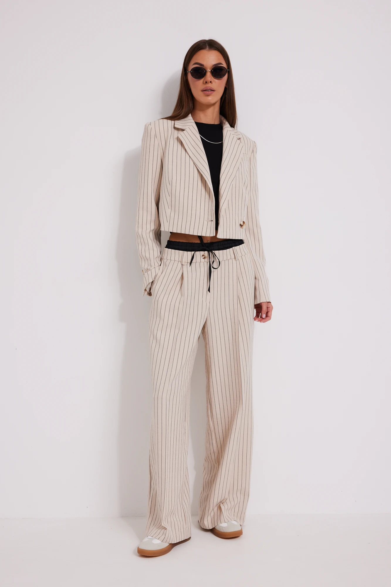 Брючный костюм NOW 1598 бежевый_в_полоску, черный тройка