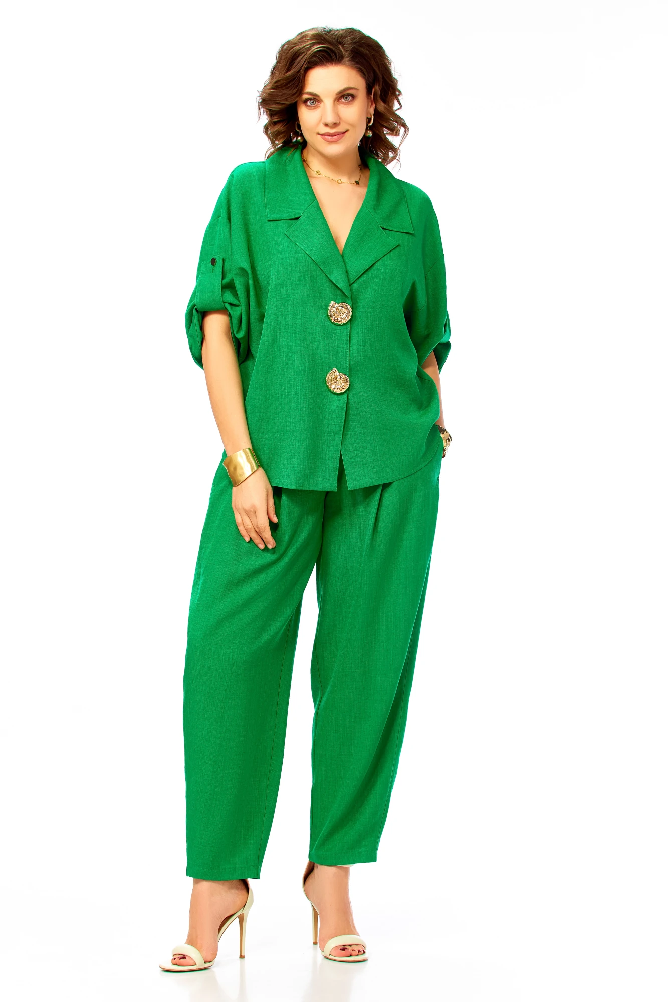 Брючный костюм Ольга Стиль 1013 зеленый двойка