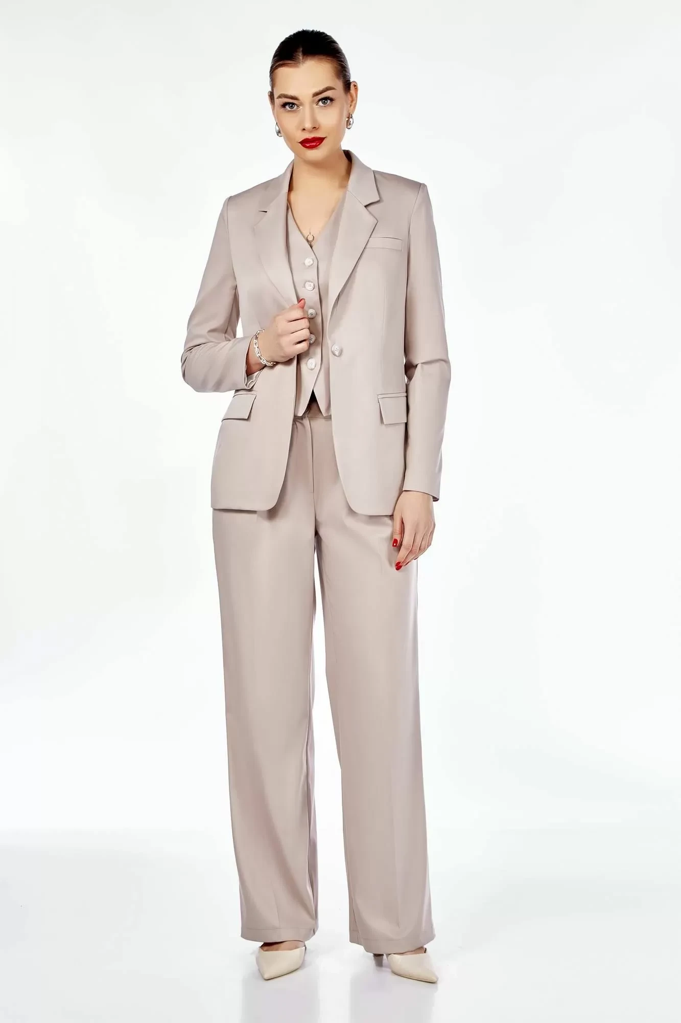 Брючный костюм Ольга Стиль 304 бежевый тройка
