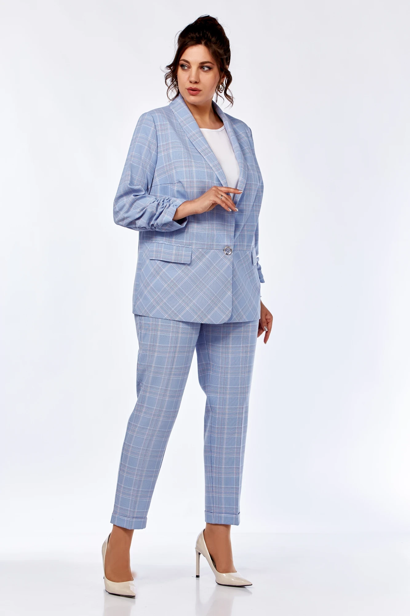 Брючный костюм Ольга Стиль 614 серо-голубая клетка