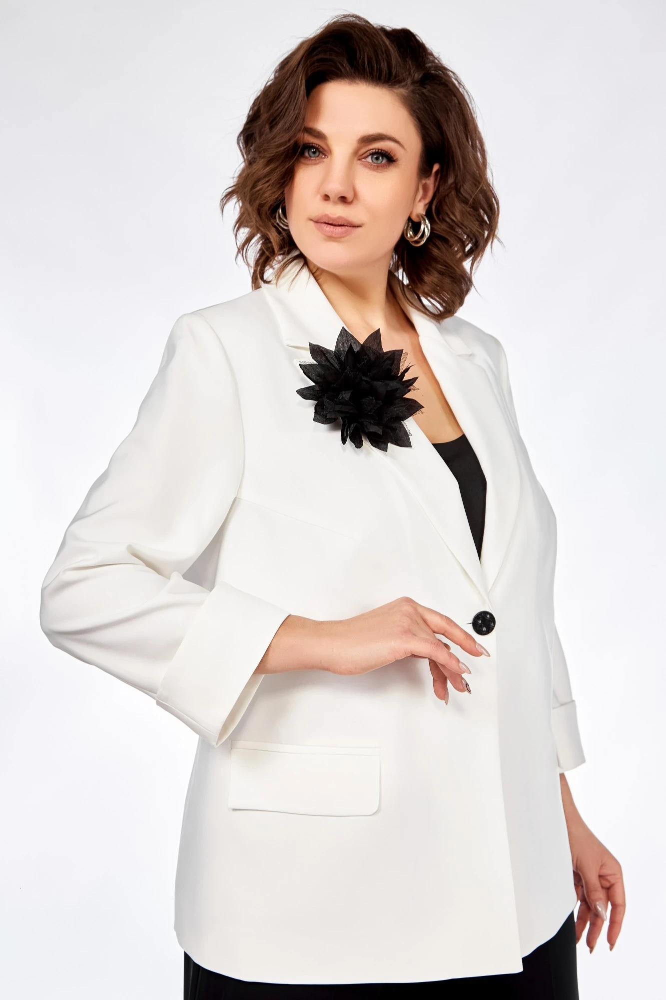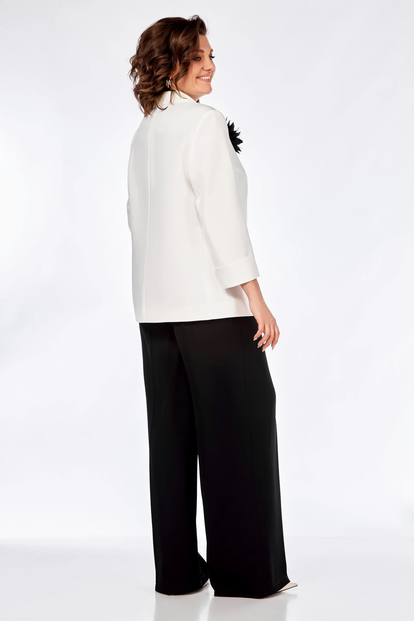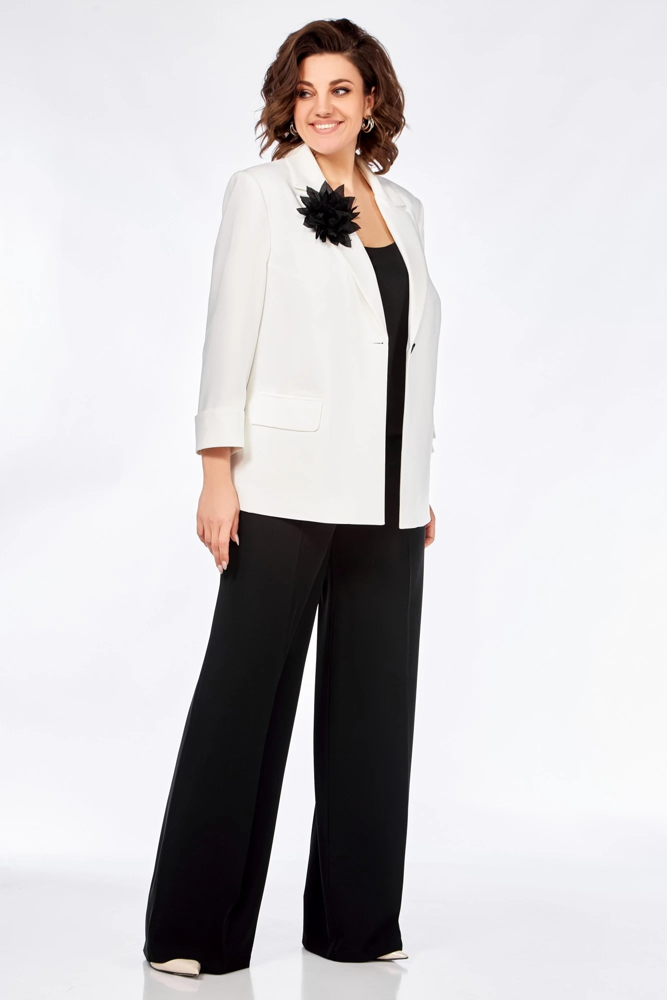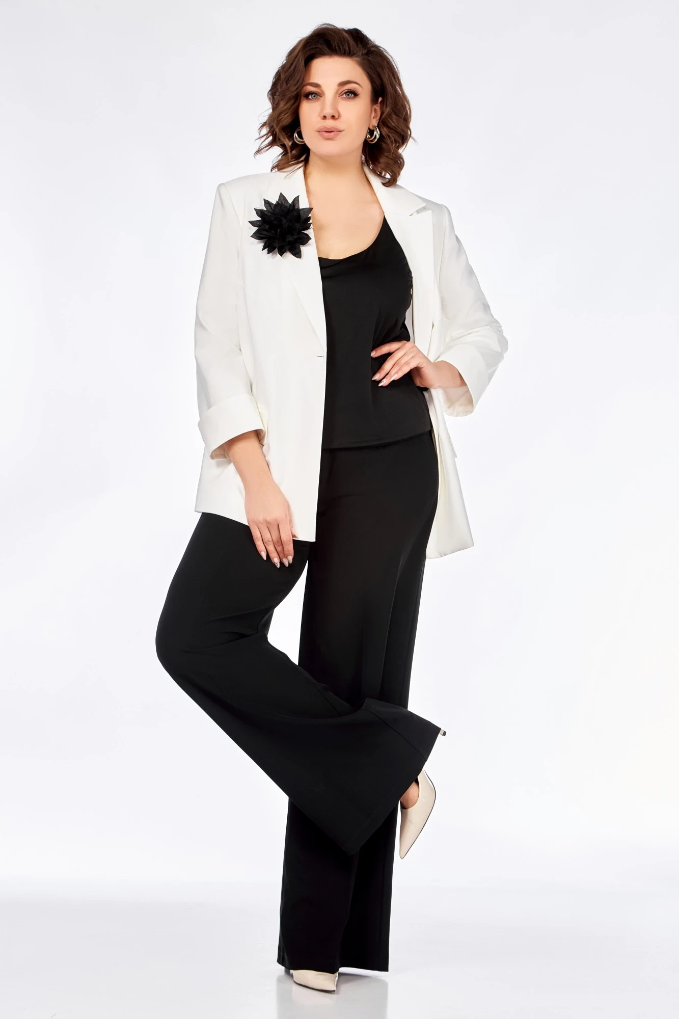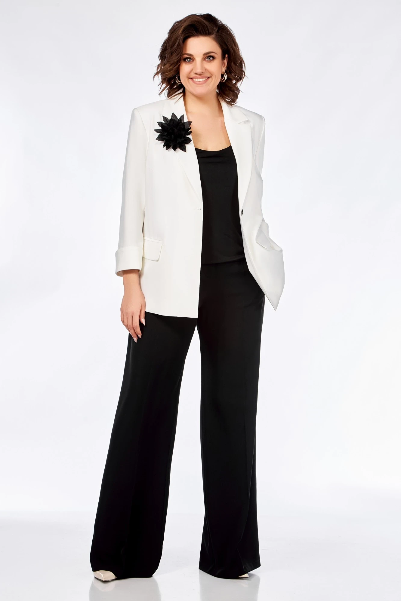 Брючный костюм Ольга Стиль 842 черно-белый тройка