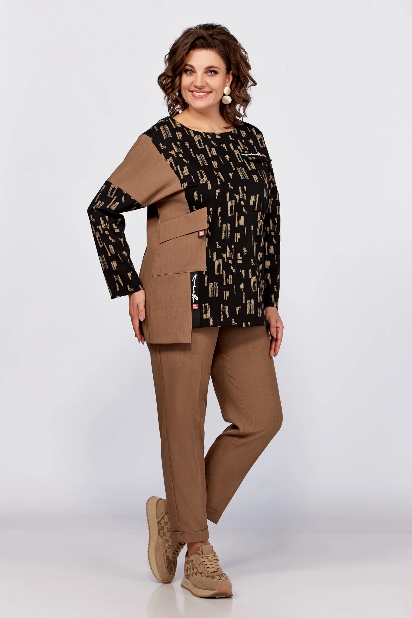Брючный костюм Ольга Стиль 862 черный-карамель