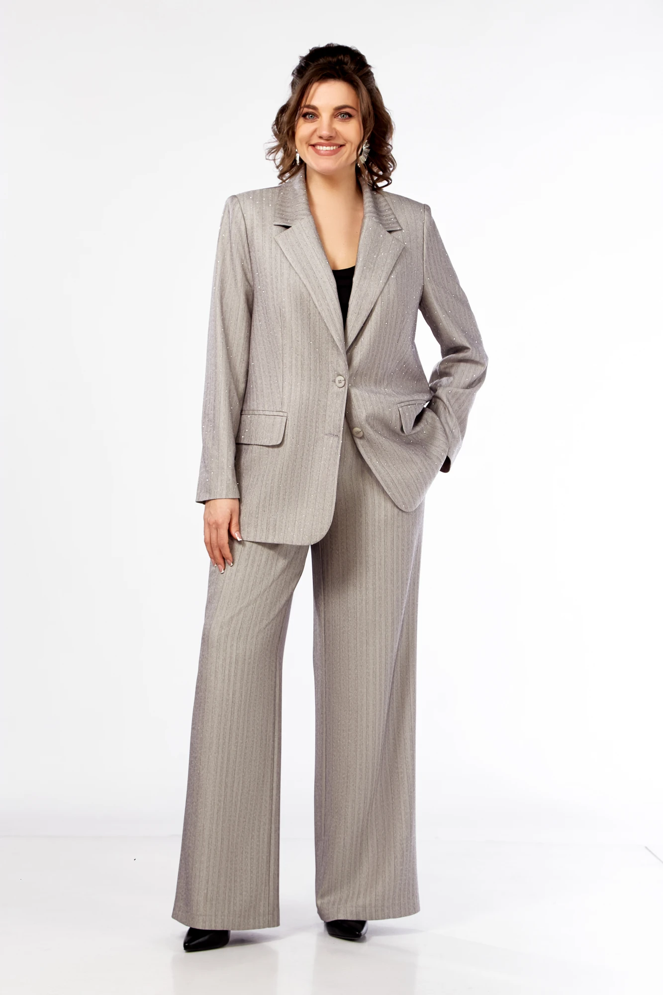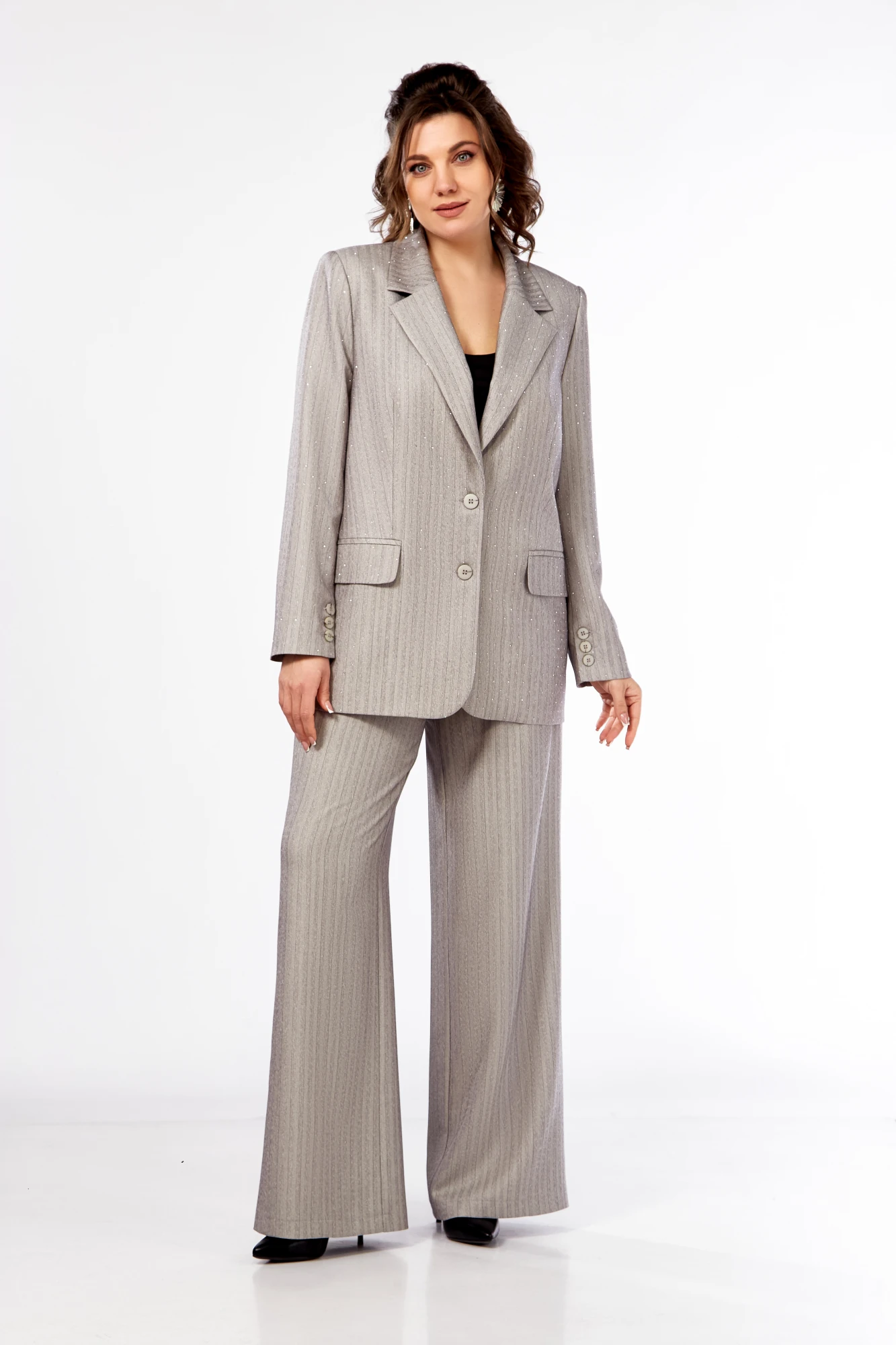 Брючный костюм Ольга Стиль 903 светло-серый двойка