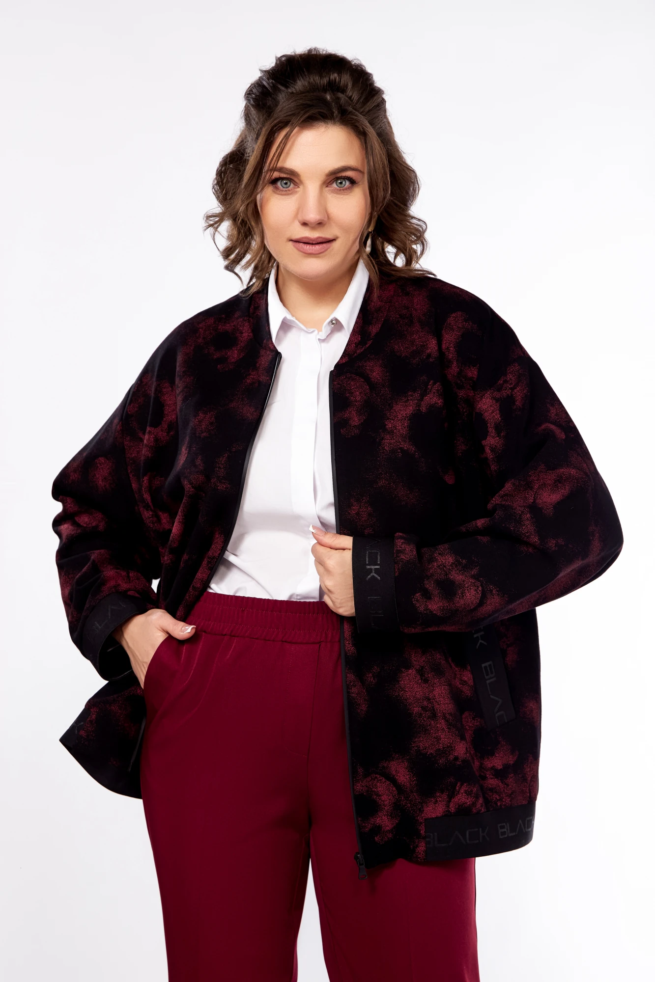 Брючный костюм Ольга Стиль 907 черный-бордовый двойка