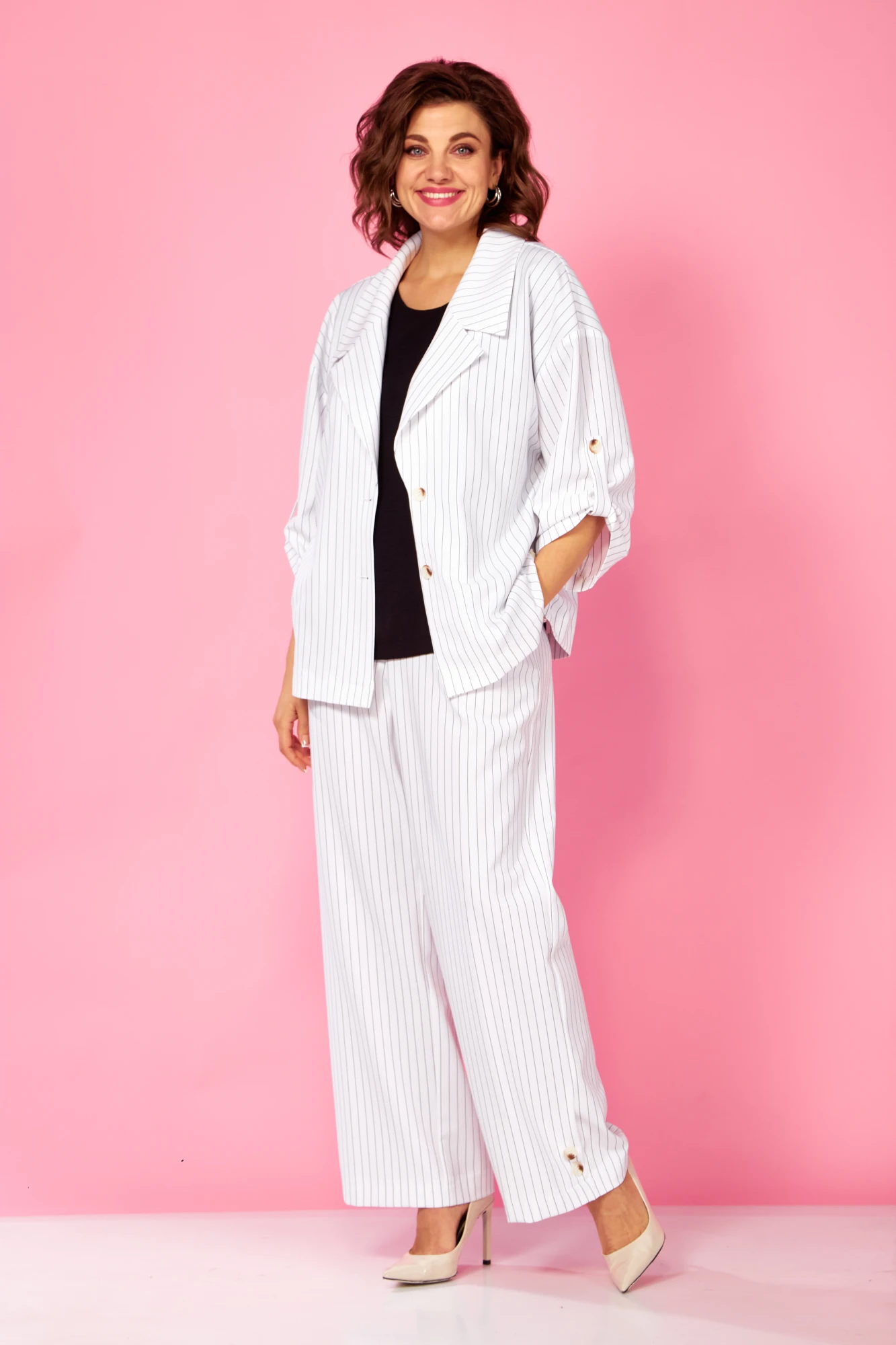 Брючный костюм Ольга Стиль 935 полоска-чёрный двойка