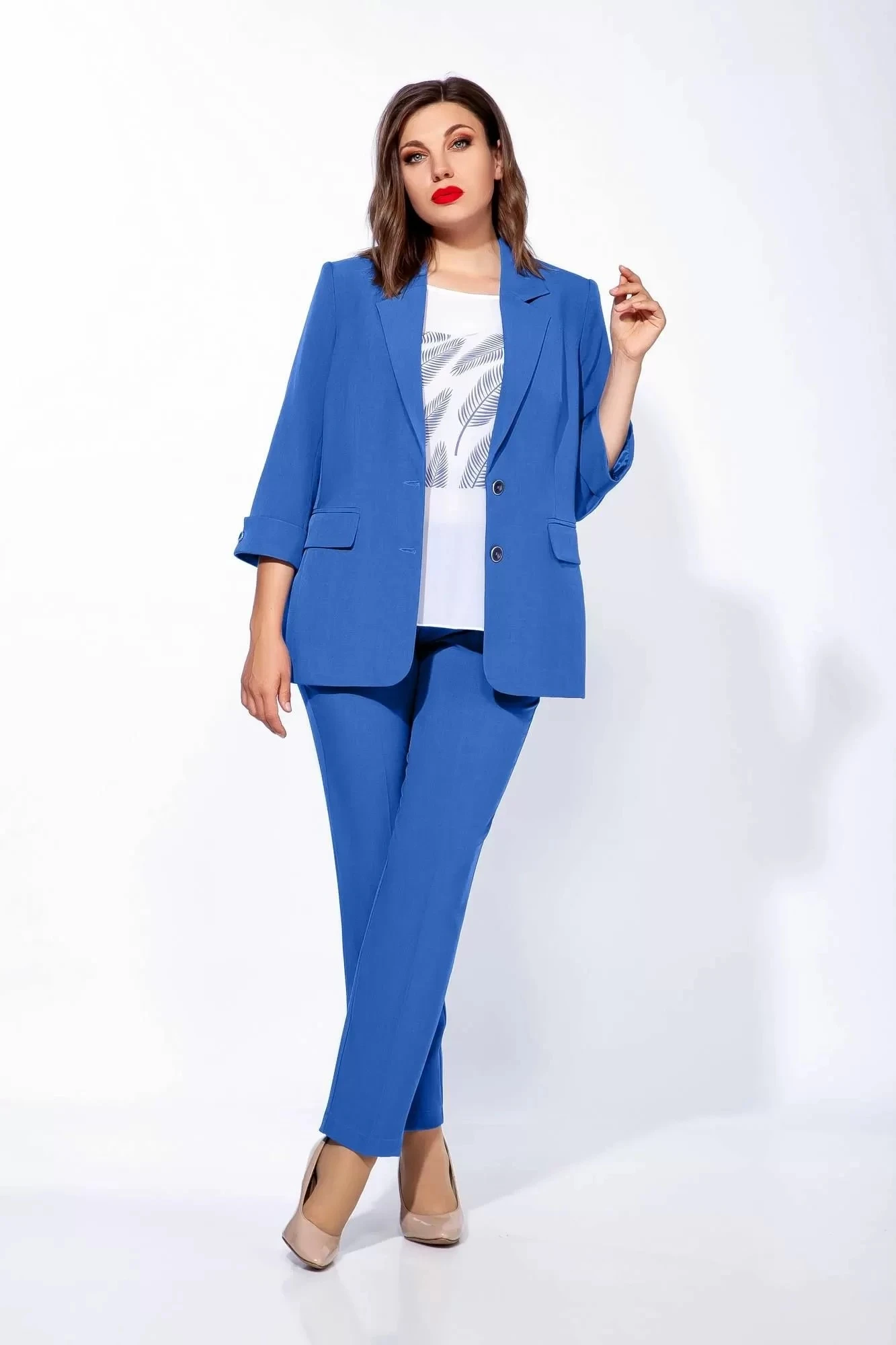 Брючный костюм Ольга Стиль С656 тройка светло-синий