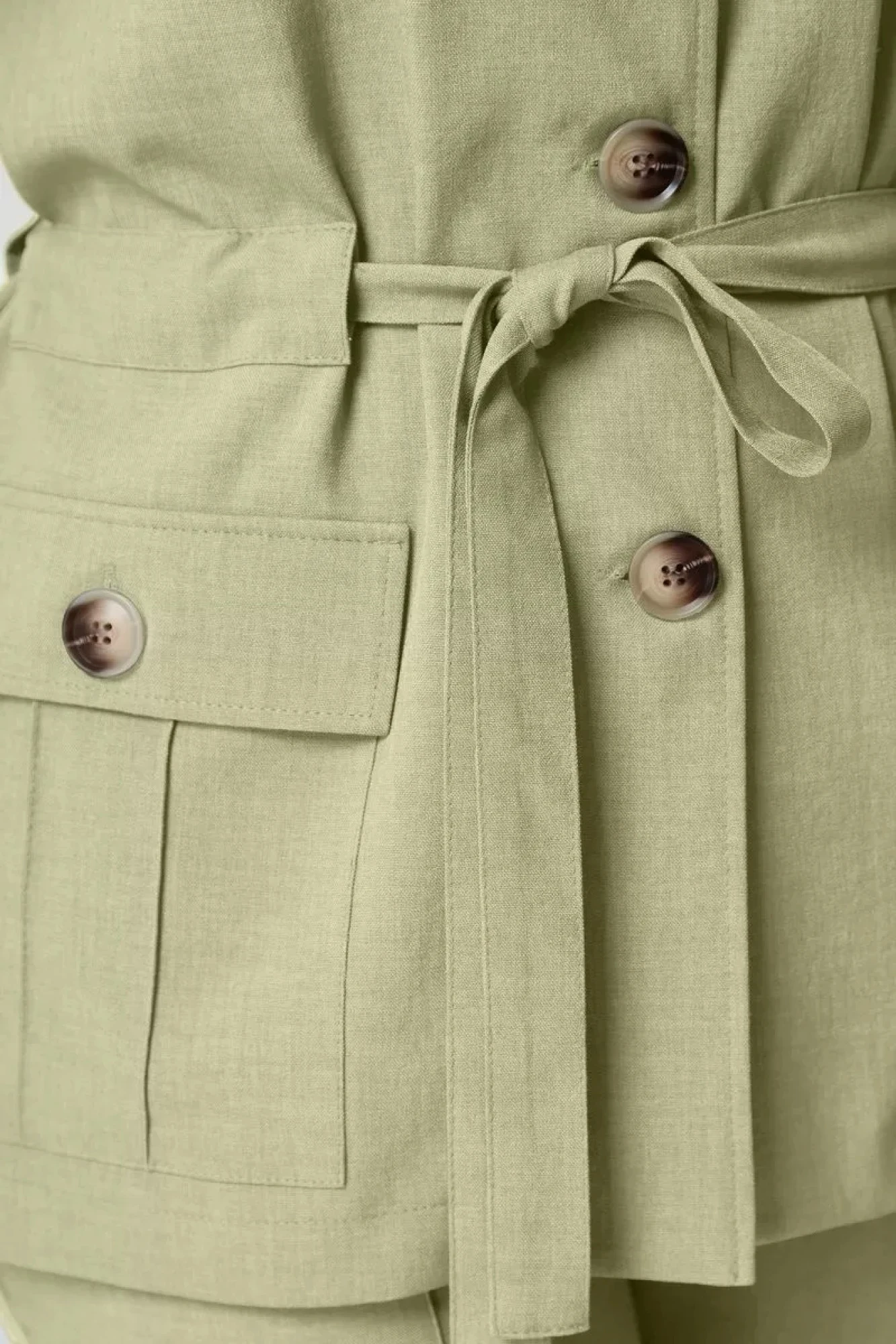 44,46,48,50,52,54Жакет: перед и спинка цельные. На переде расположена нагрудная вытачка, идущая из бокового шва. Горловина оформлена воротником пиджачного типа, центрально-бортовая застежка на петли-пуговицы. На переде, в области бедер, расположены накладные карманы (с защипами, вертикально направленные) с клапанами на одну пуговицу. Низ рукавов оформлен притачными манжетами и патами, фиксирующимися на пуговицу и шлевку. На переде и спинке расположены кулисы в области талии.