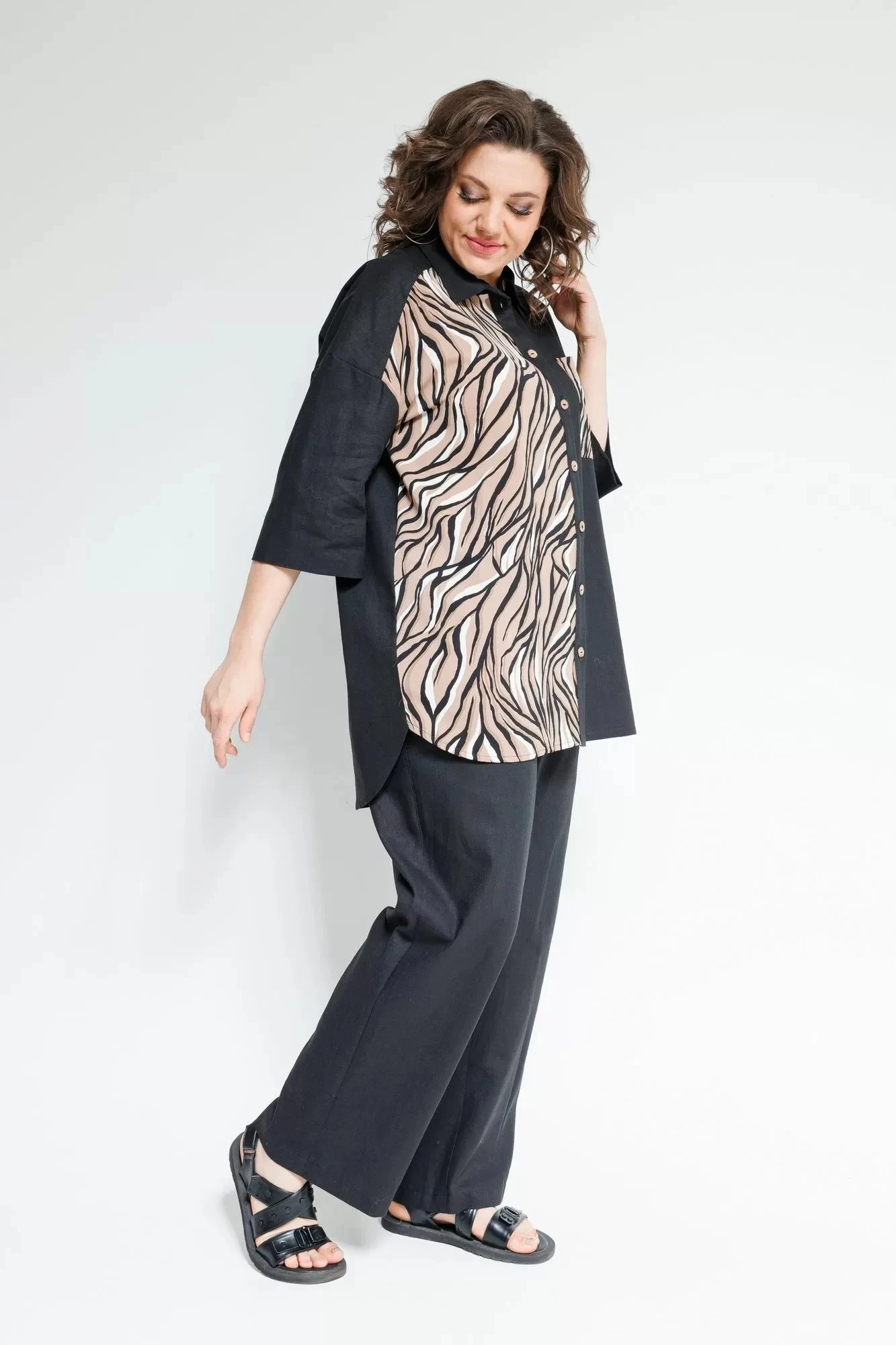 Брючный костюм OVERYOU 101-1 черный + дизайн двойка