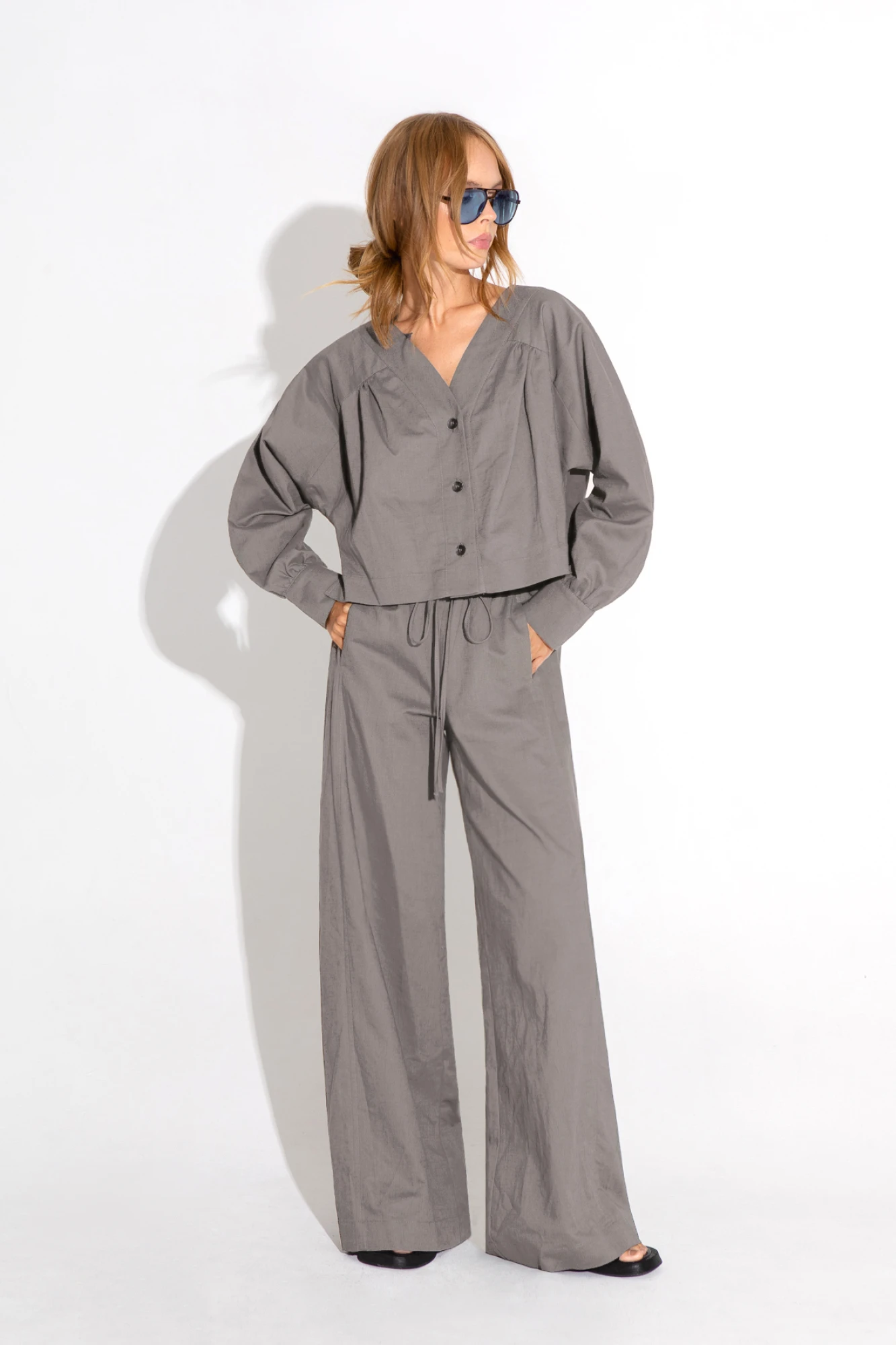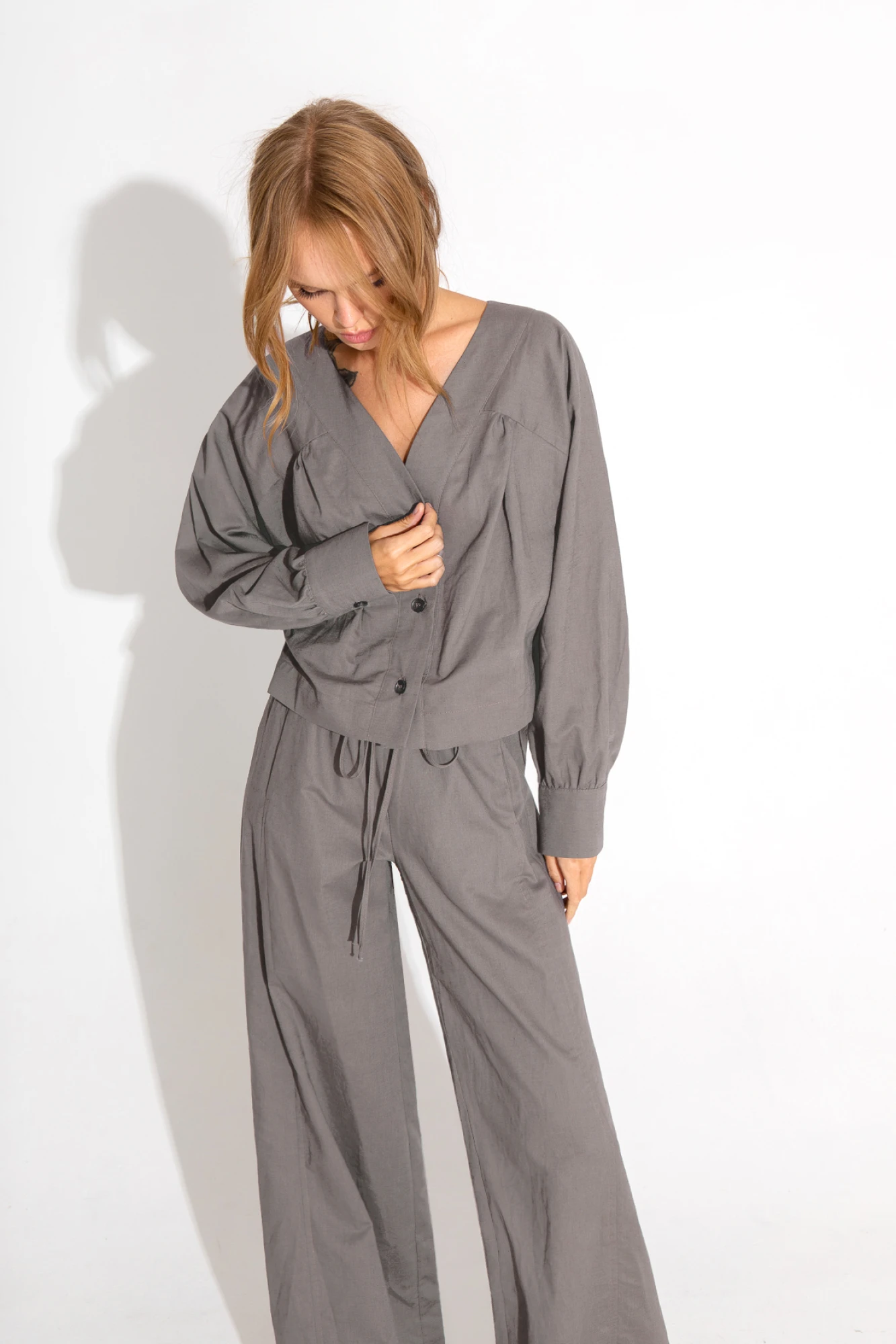 Брючный костюм PiRS 4554 серо-бежевый двойка