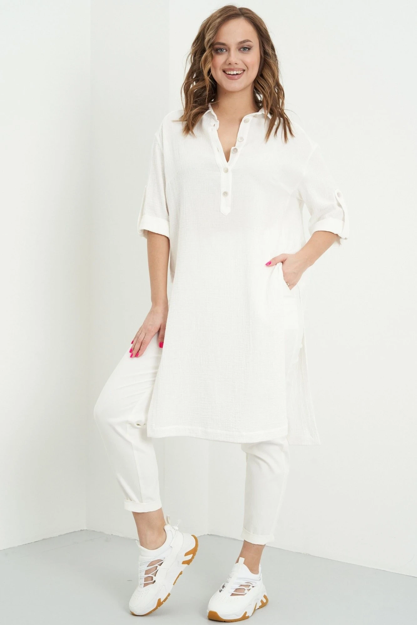 Комплект состоит из удлинённой рубашки-туники и брюк.