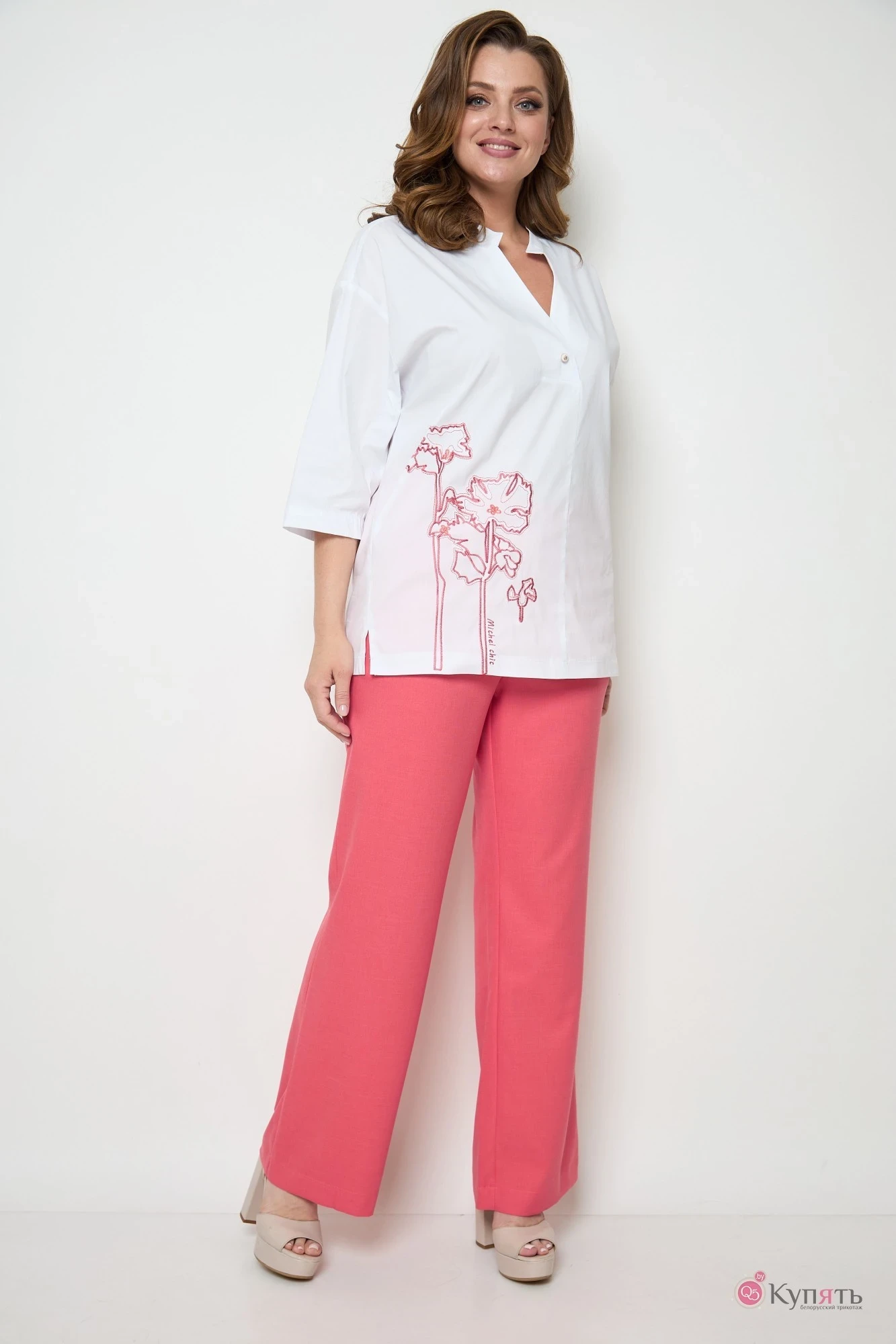 Длина блузки по спинке - 71 см, длина рукава — 58 см, длина брюк по шаговому шву - 109 см, по боковому — 78 см. Изделие подойдет на рост 170 см.