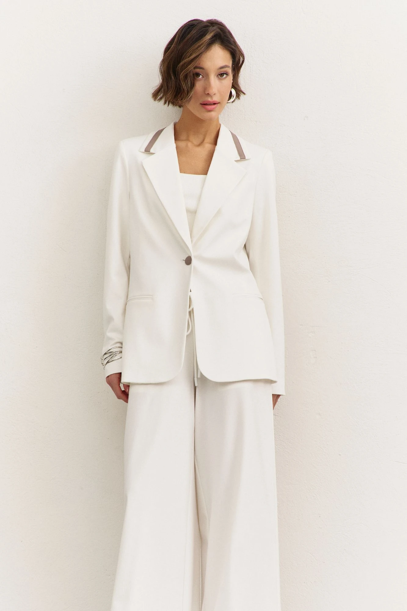 • воротник пиджачного типа с лацканами, с декоративным элементом из отделочной ткани