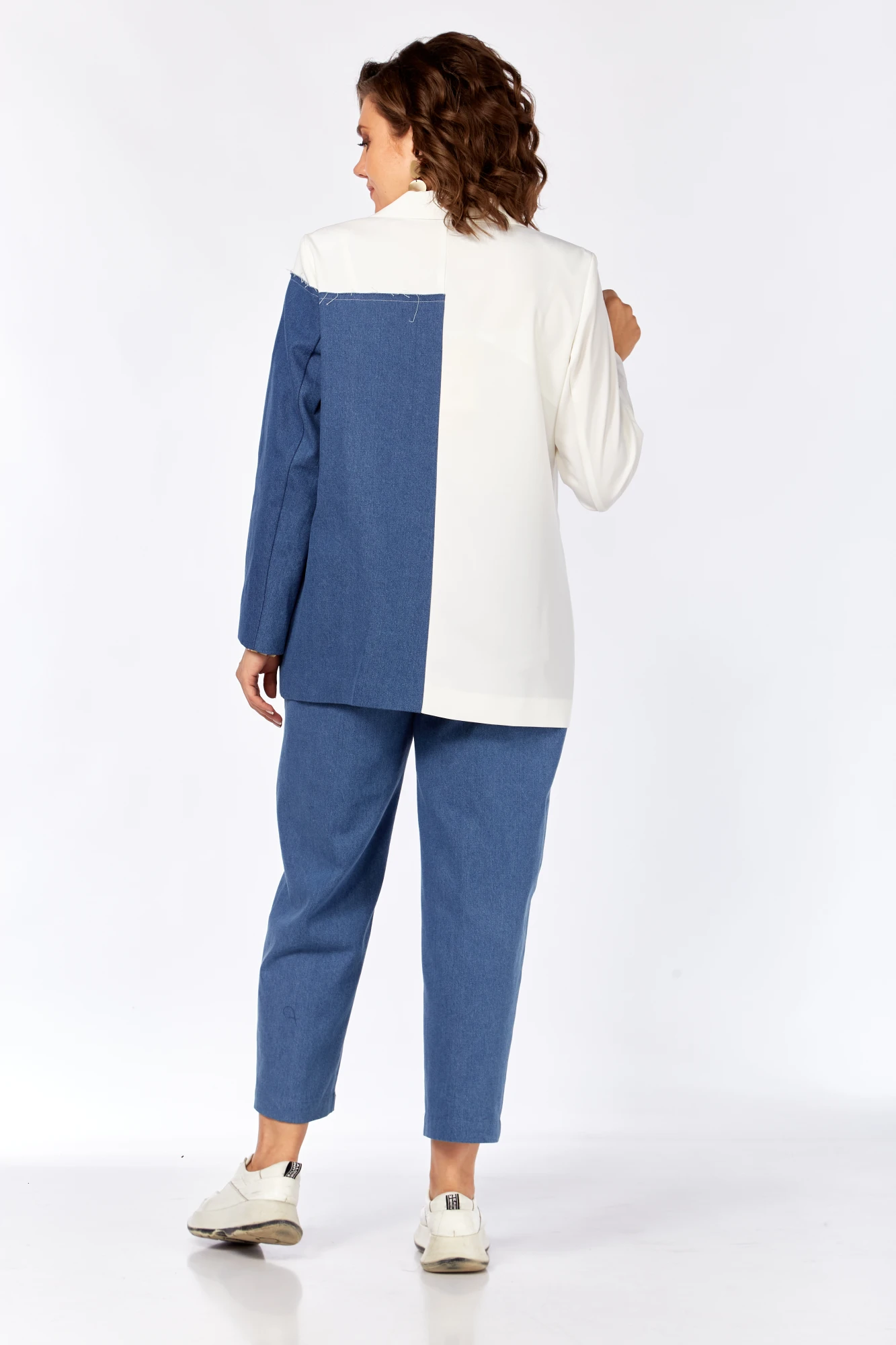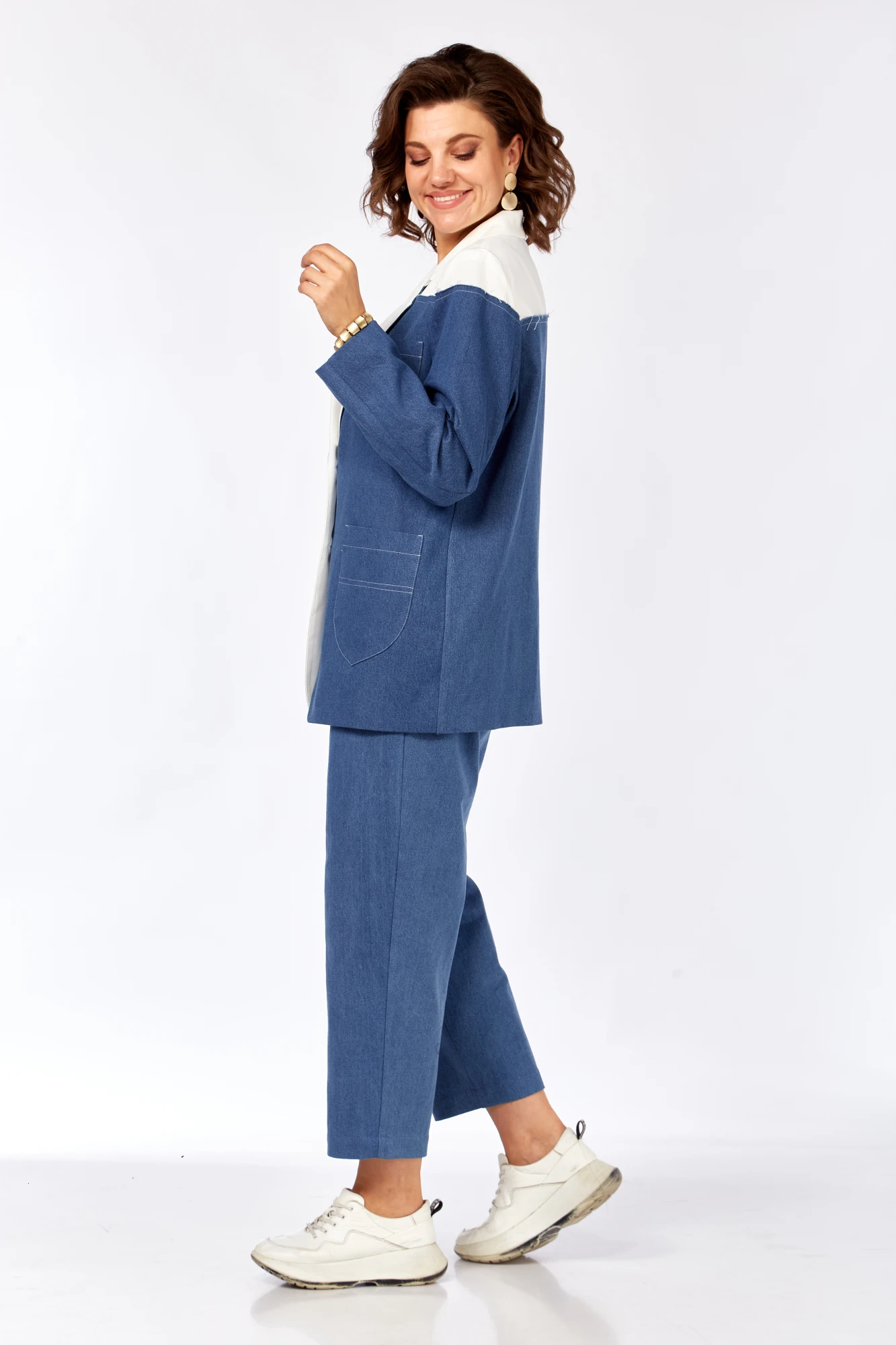 Брючный костюм Rishelie 1003 синий(джинс) +молочный