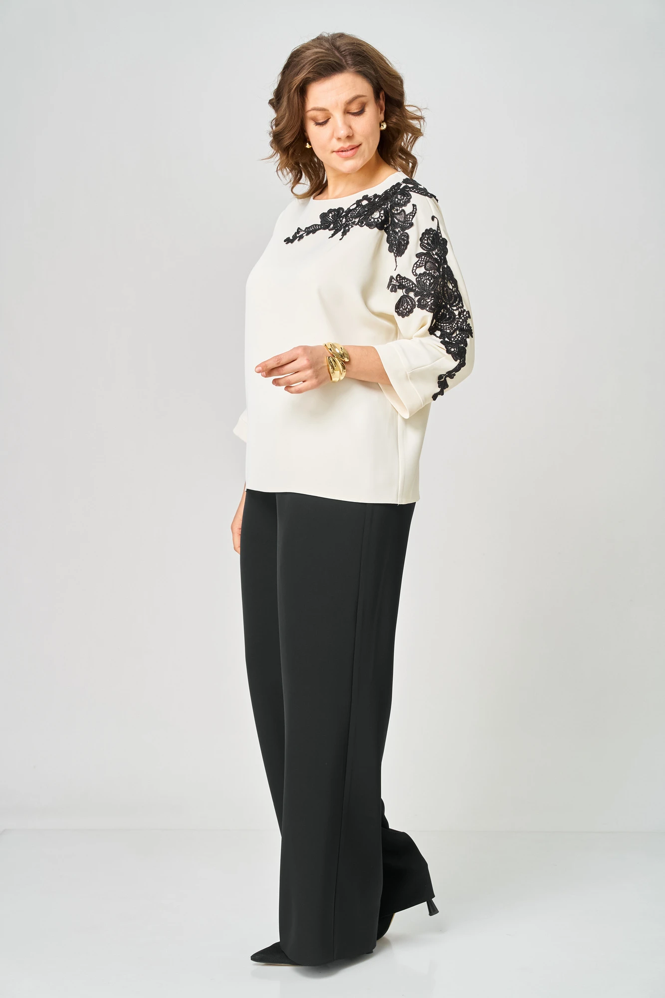 Брючный костюм Rumoda 2278 молочный_черный дл.р. двойка